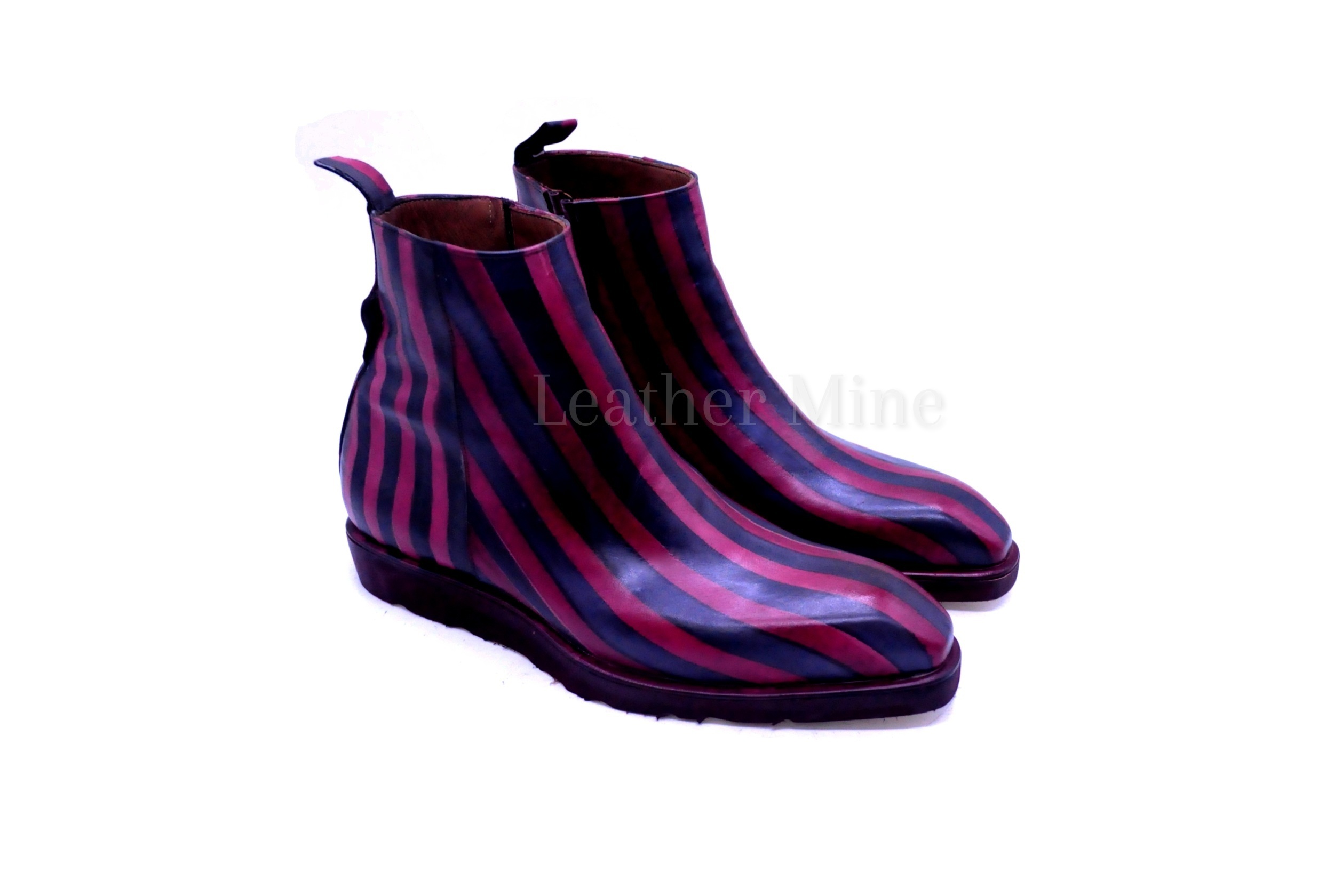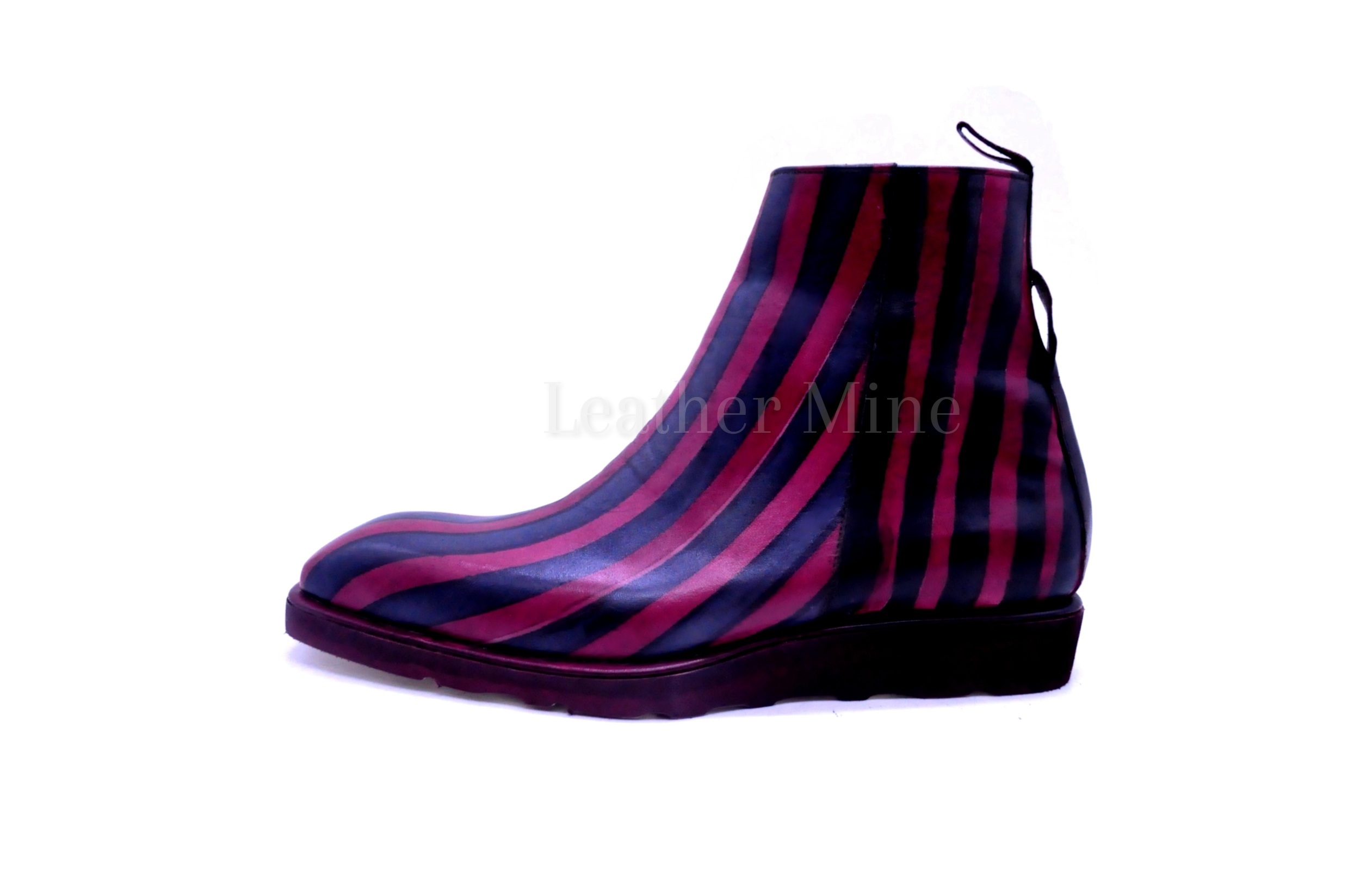 Handmade Burgundy Patina Leather Ankle Custom Made Boots For Men