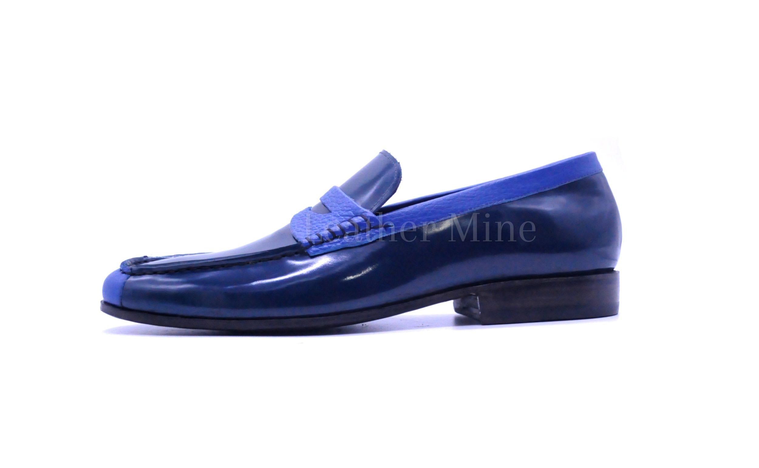 Handmade Men's Blue Loafers Leather Shoes For Men