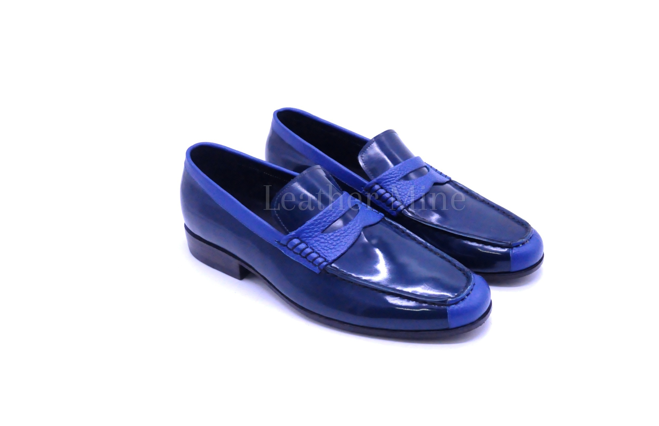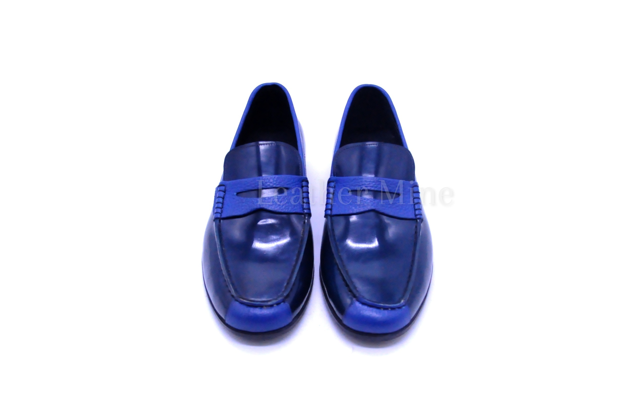 Men's Handmade Blue Leather Loafers Formal Shoes
