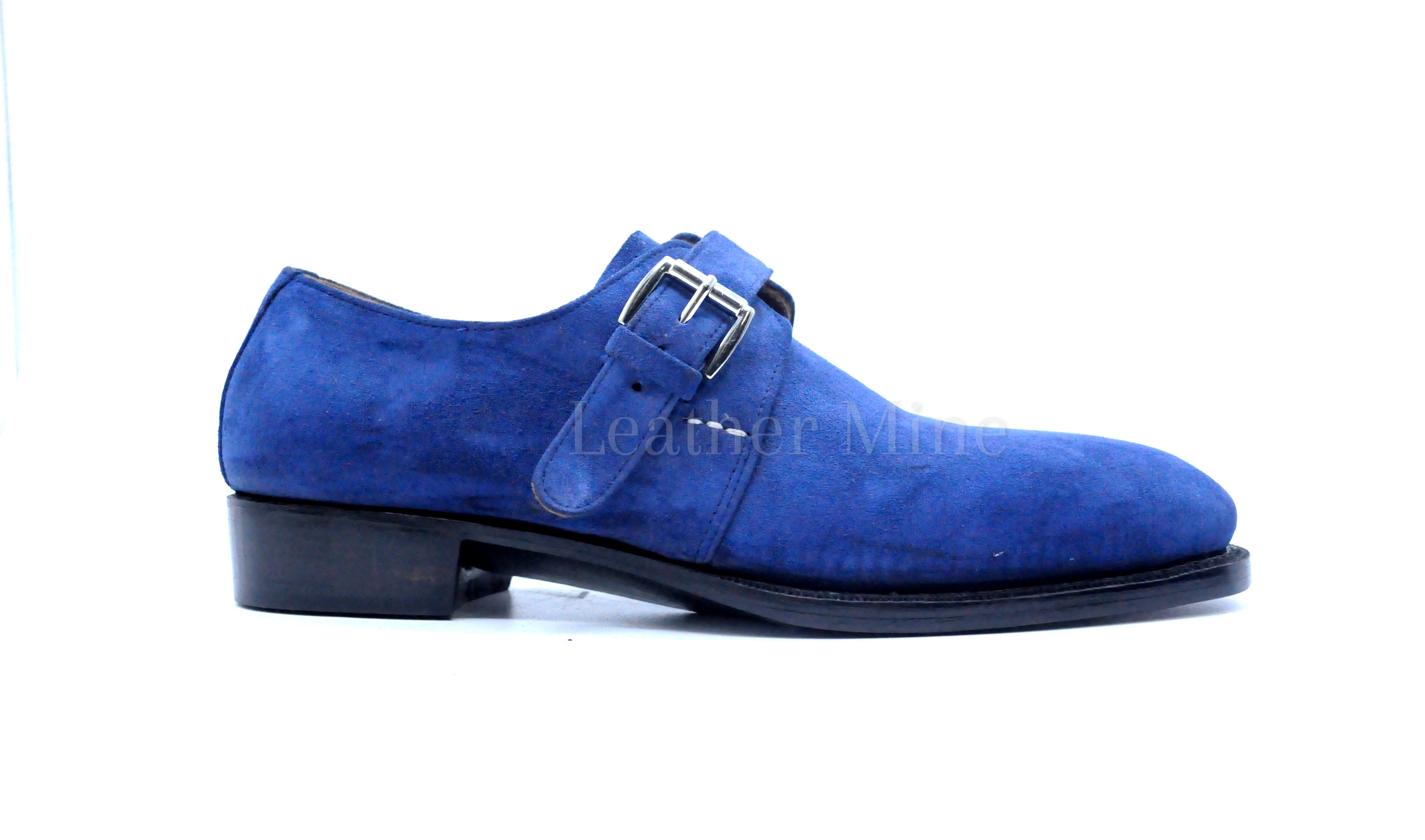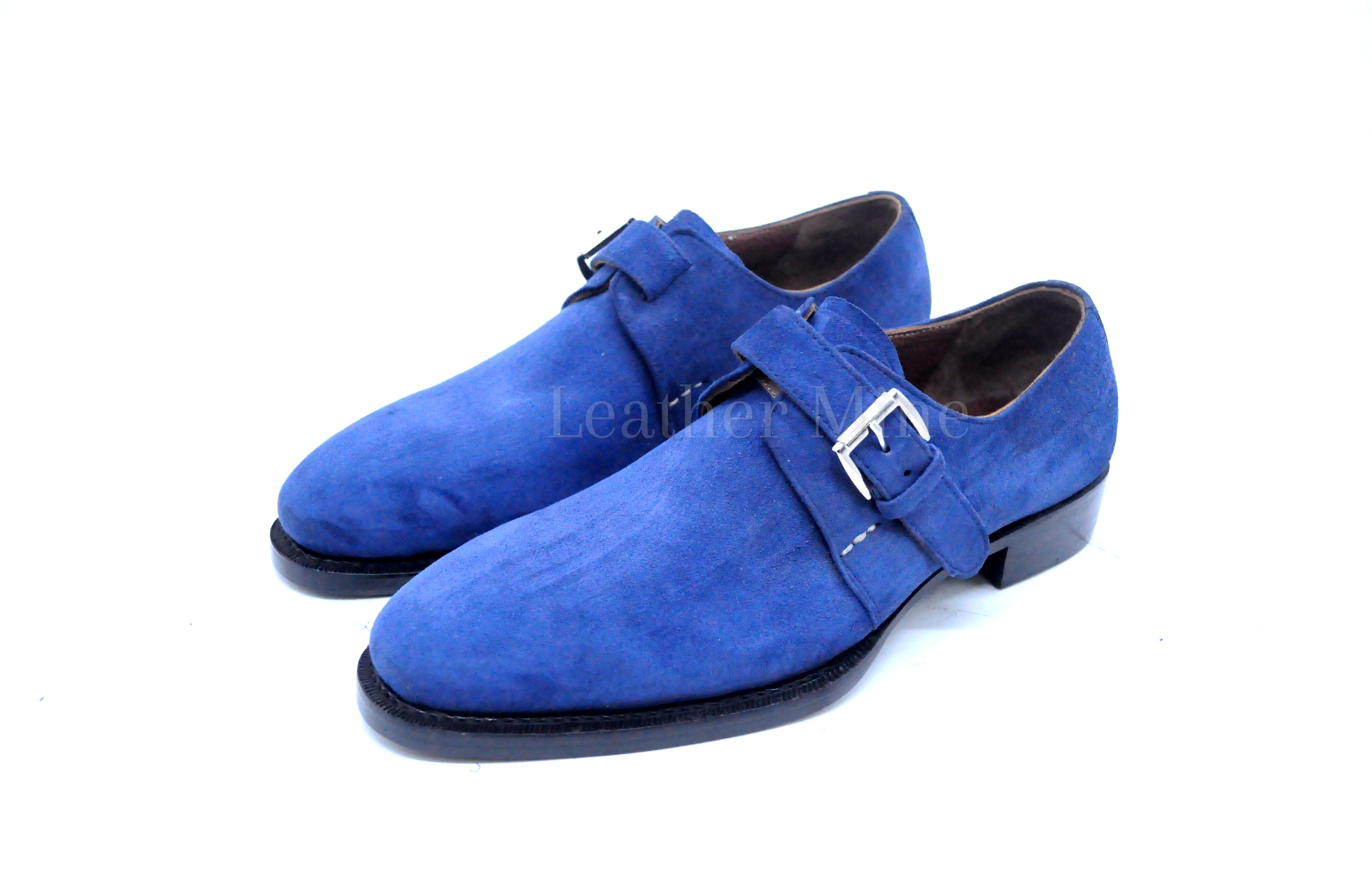 Men's Handmade Blue Suede Monk Strap dress Shoes