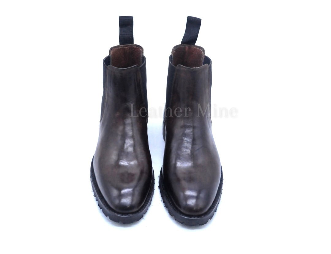 Men's Handmade Brown Chelsea Leather Ankle dress Boots