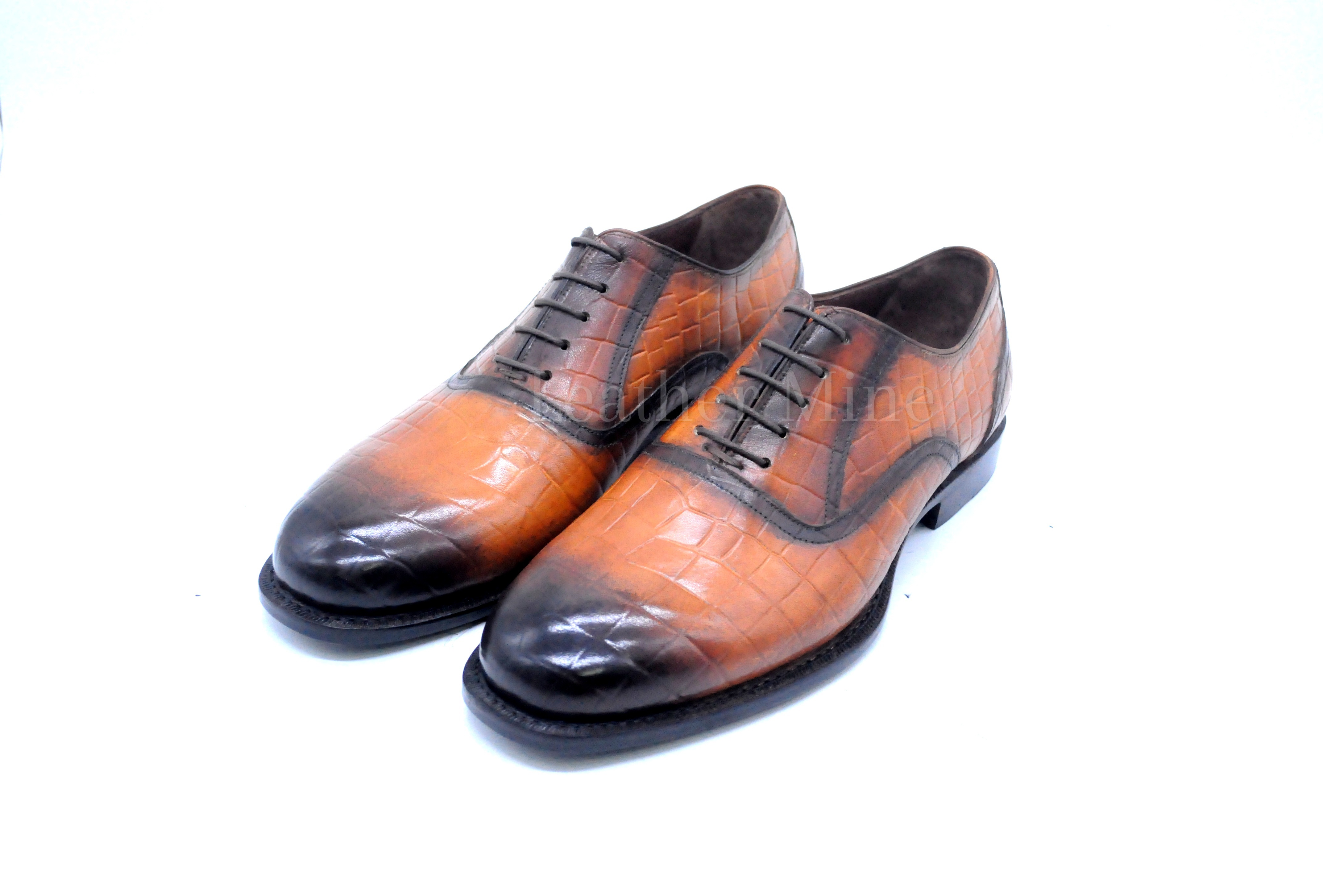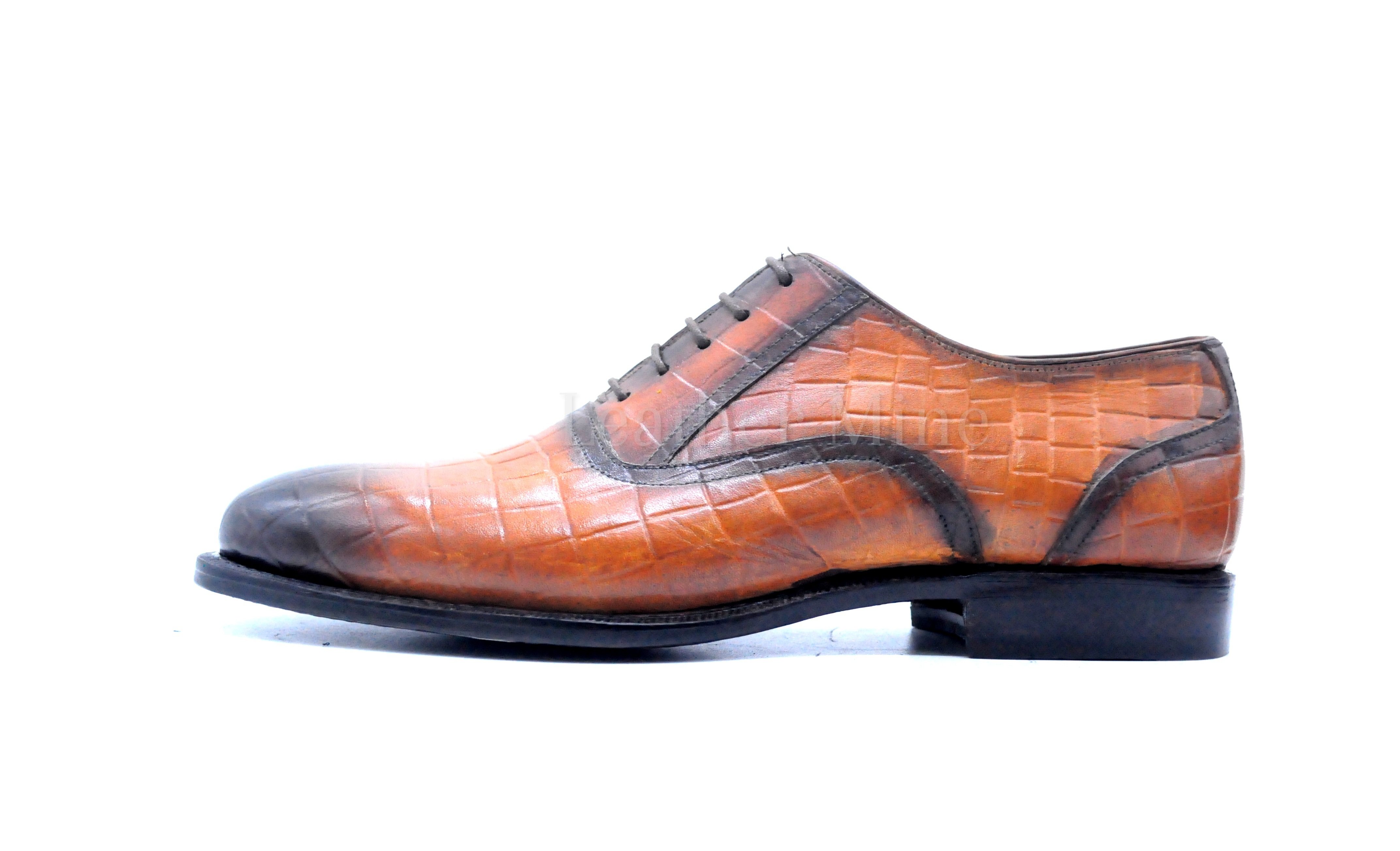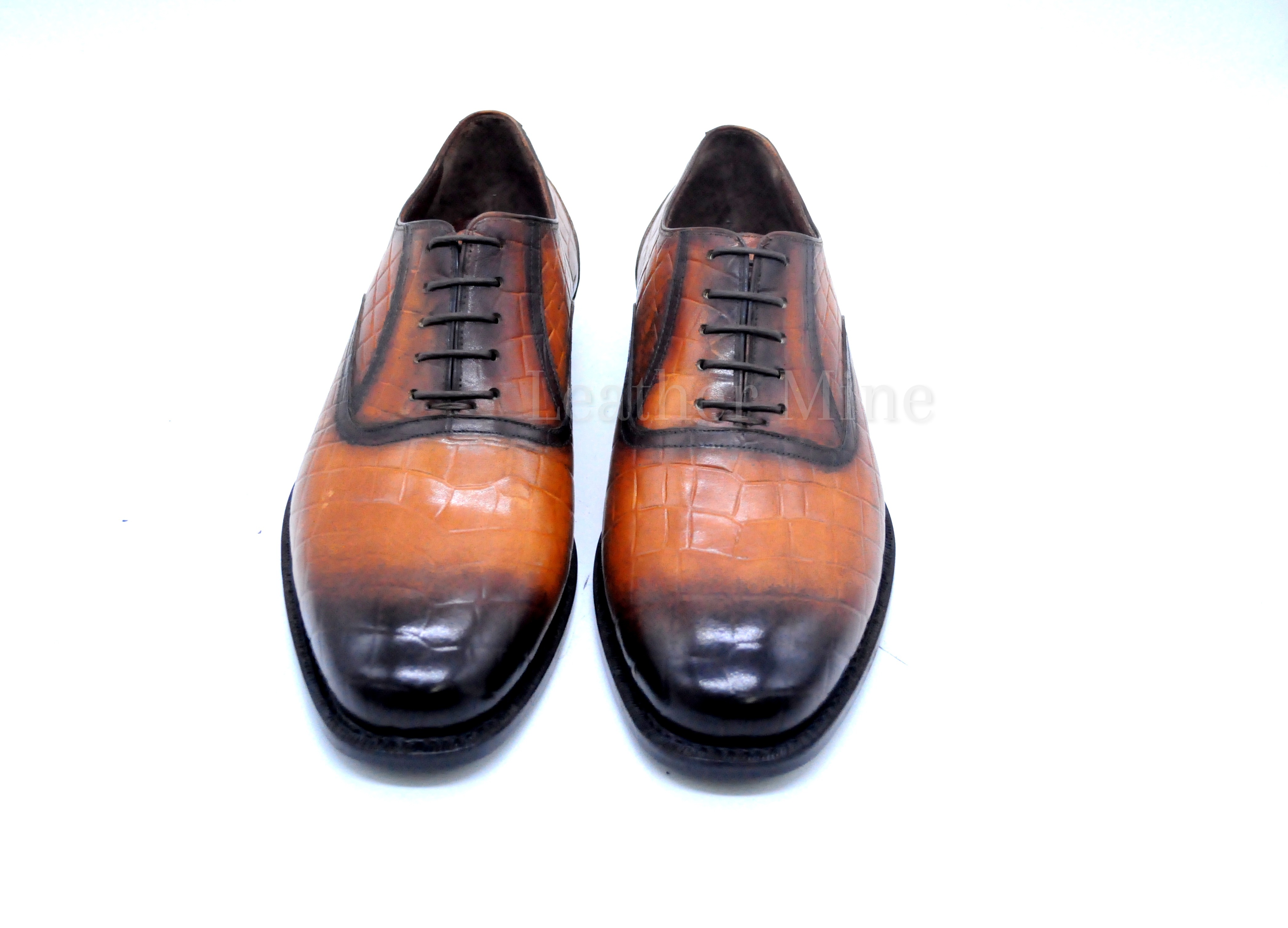 Men's Handmade Tan Patina Oxfords Shoes, Handmade Leather Dress Shoes