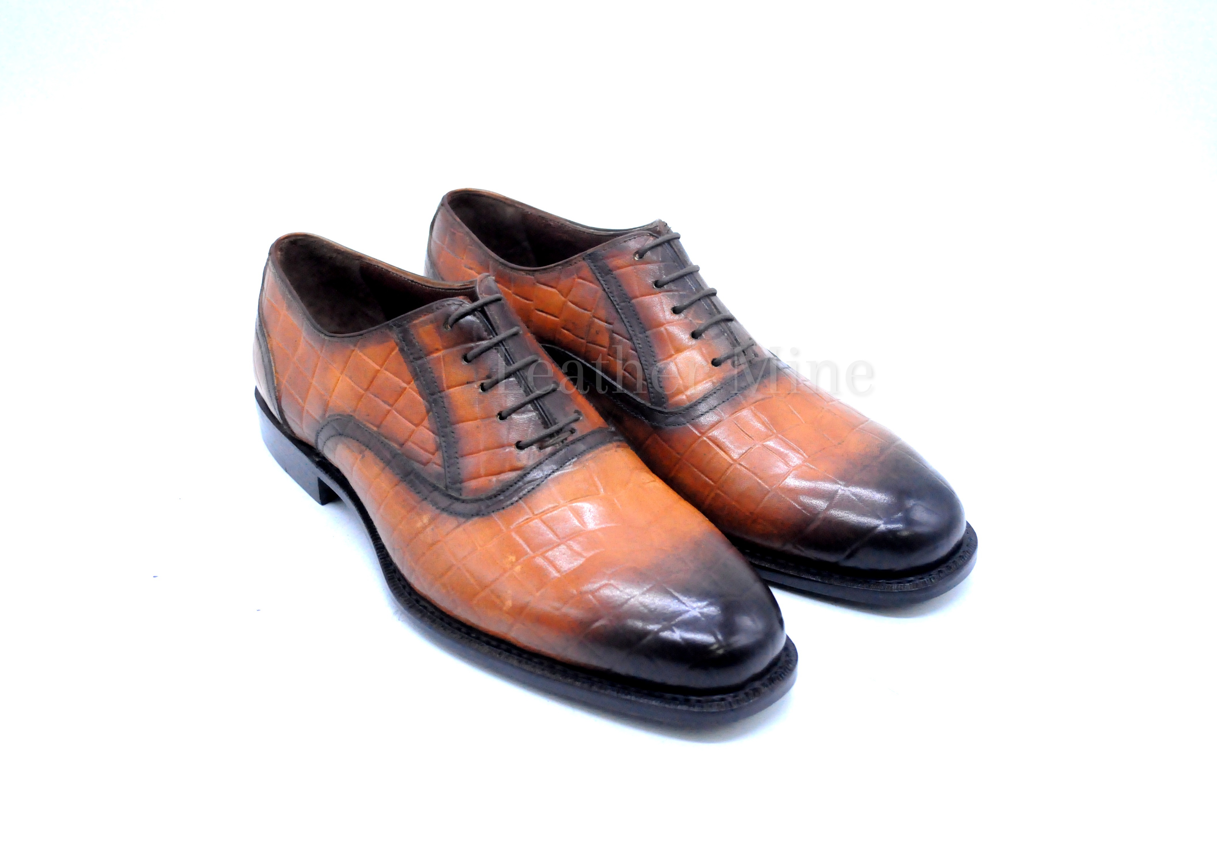 Genuine Leather Tan Patina Oxfords Shoes For Men