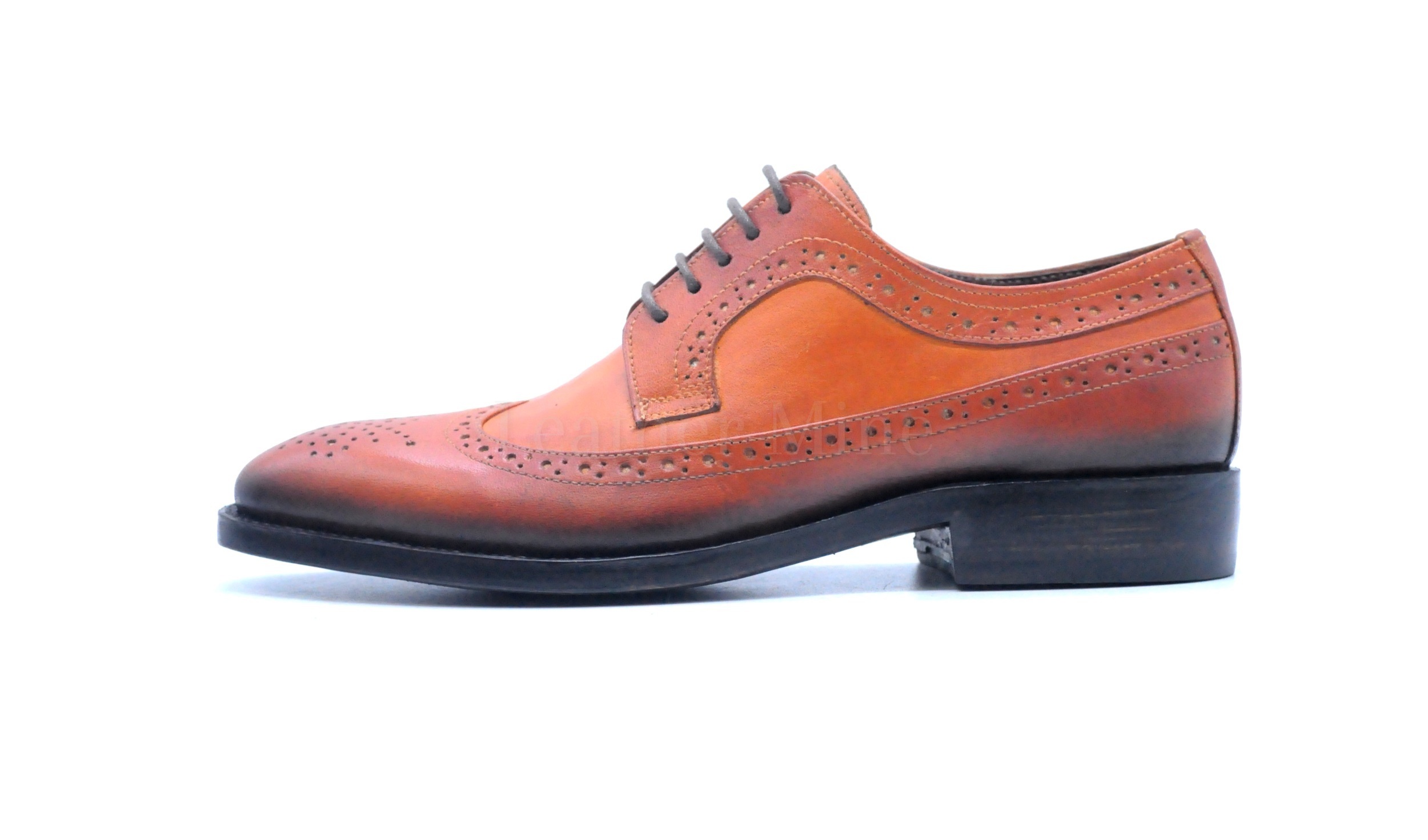 Leather Dress Shoes Mens, Handmade Tan Wingtip Derby Custom Made Shoes