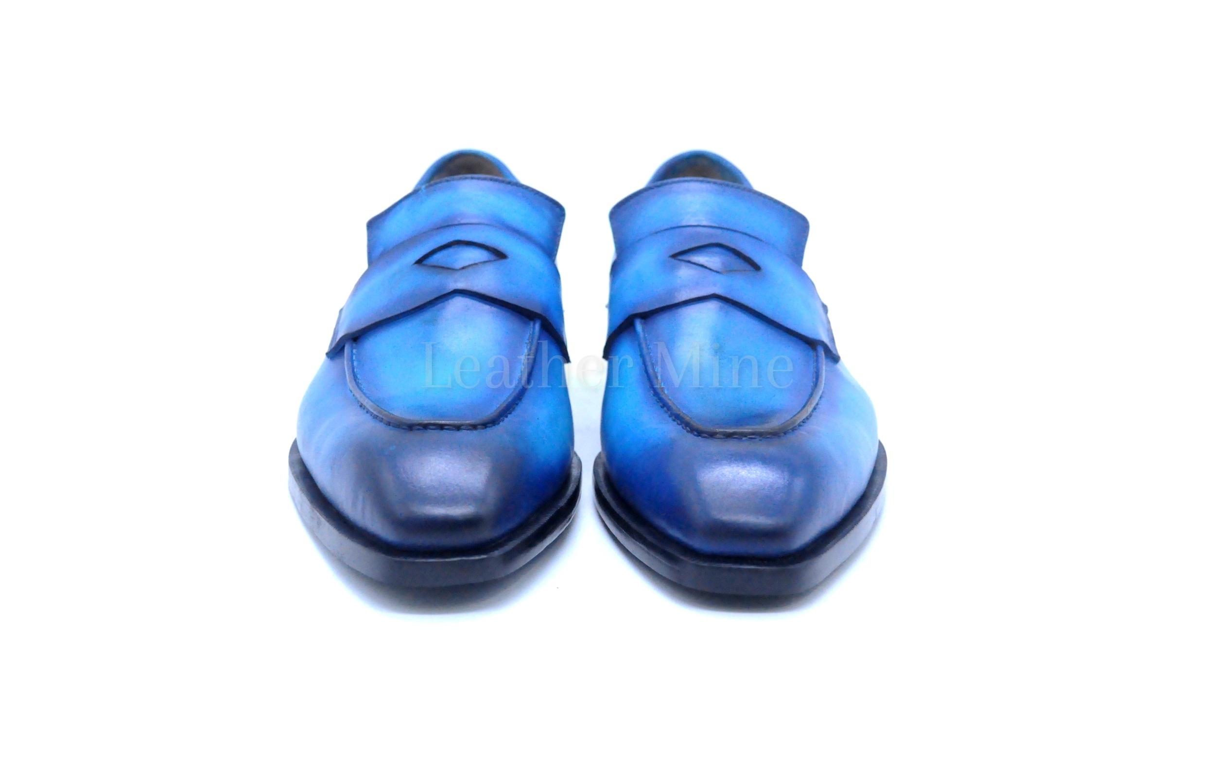 Leather Dress Shoes Mens, Handmade Blue Patina Loafers Formal Shoes