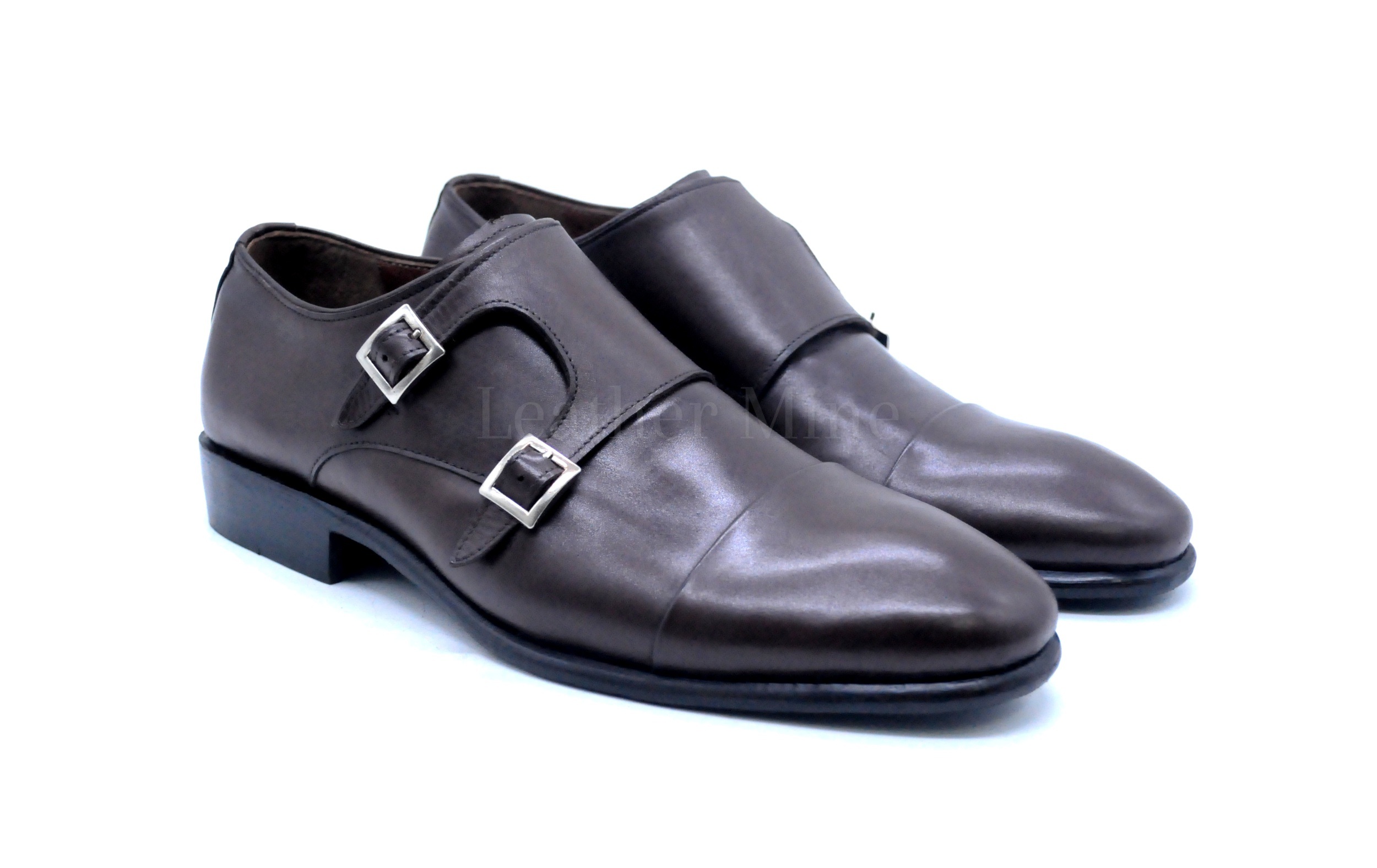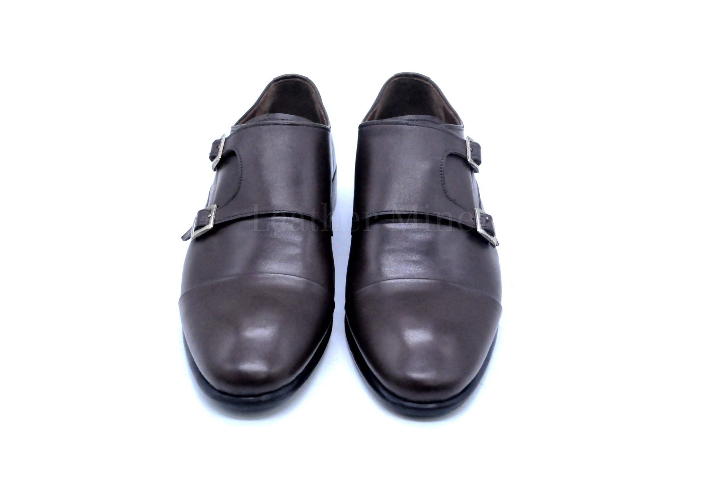 Handmade Brown Double Monk Custom Made Shoes, Leather Dress Shoes Mens