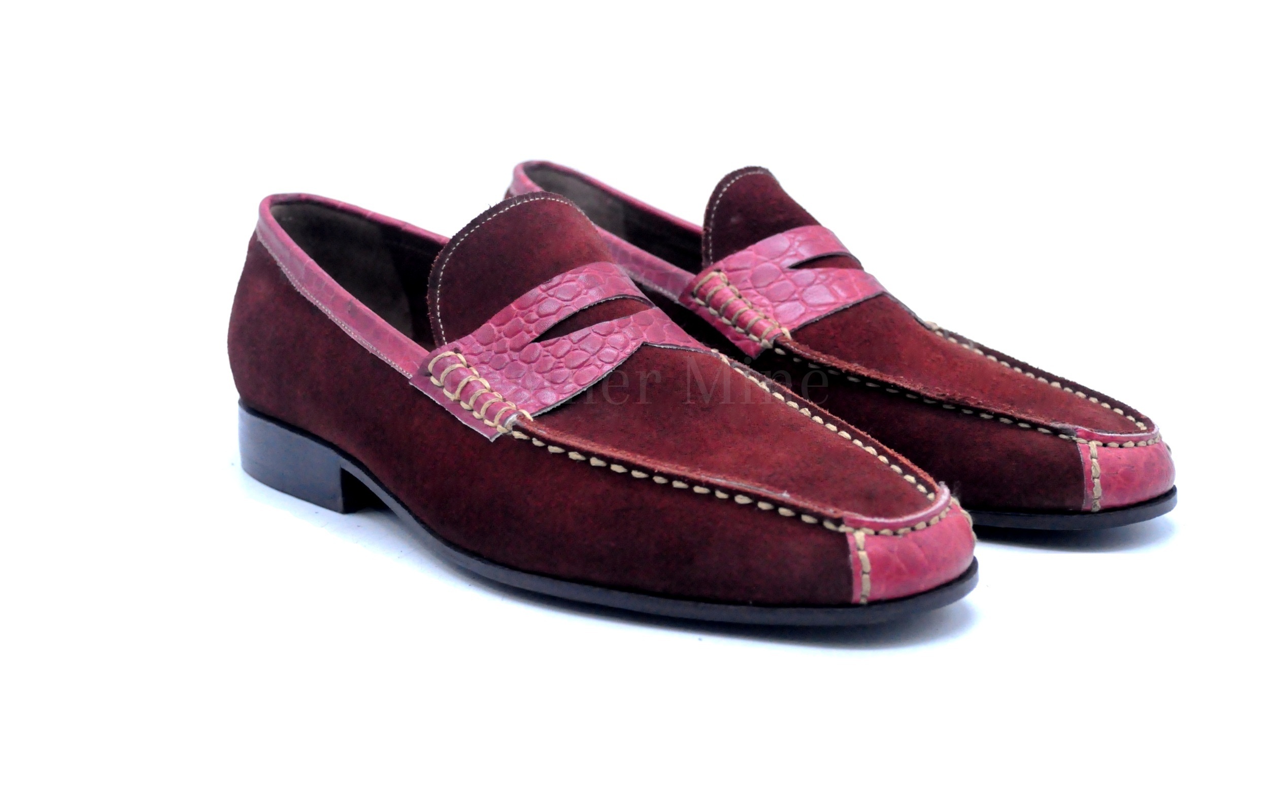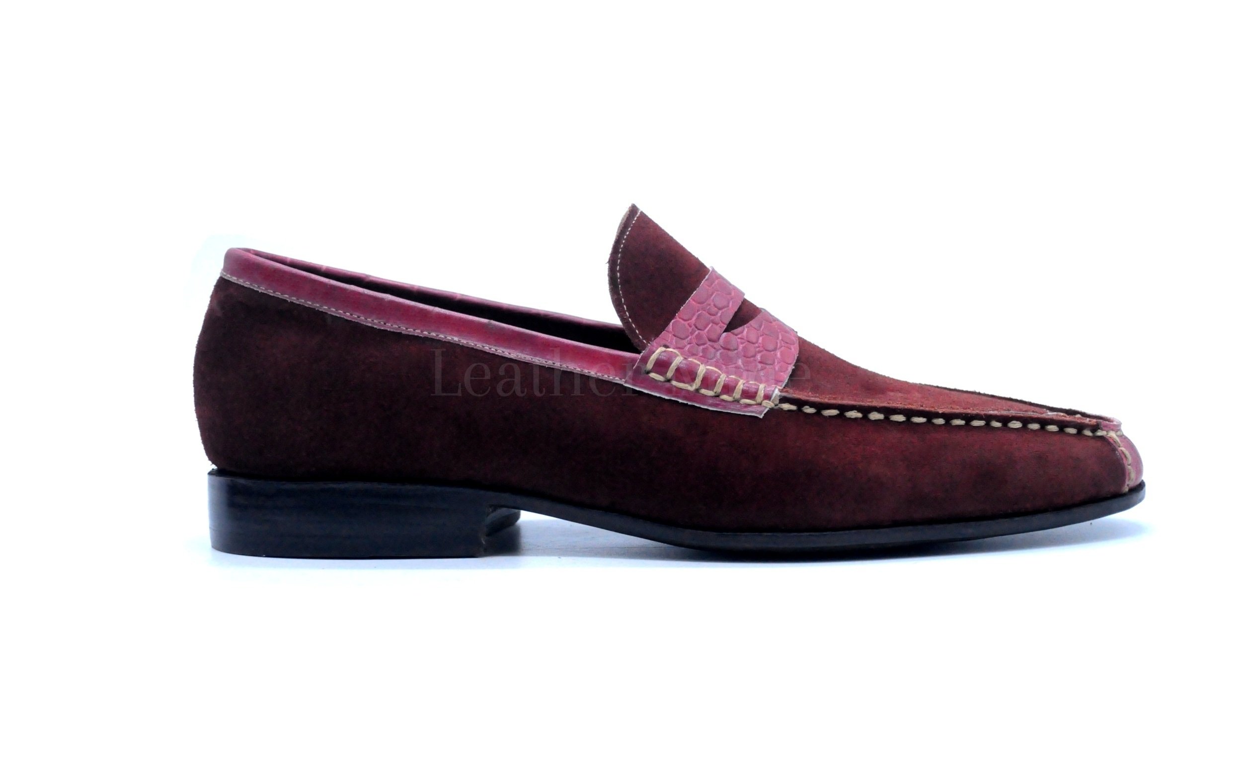 Handmade Red Suede Loafers Custom Made Shoes, Leather Dress Shoes Mens