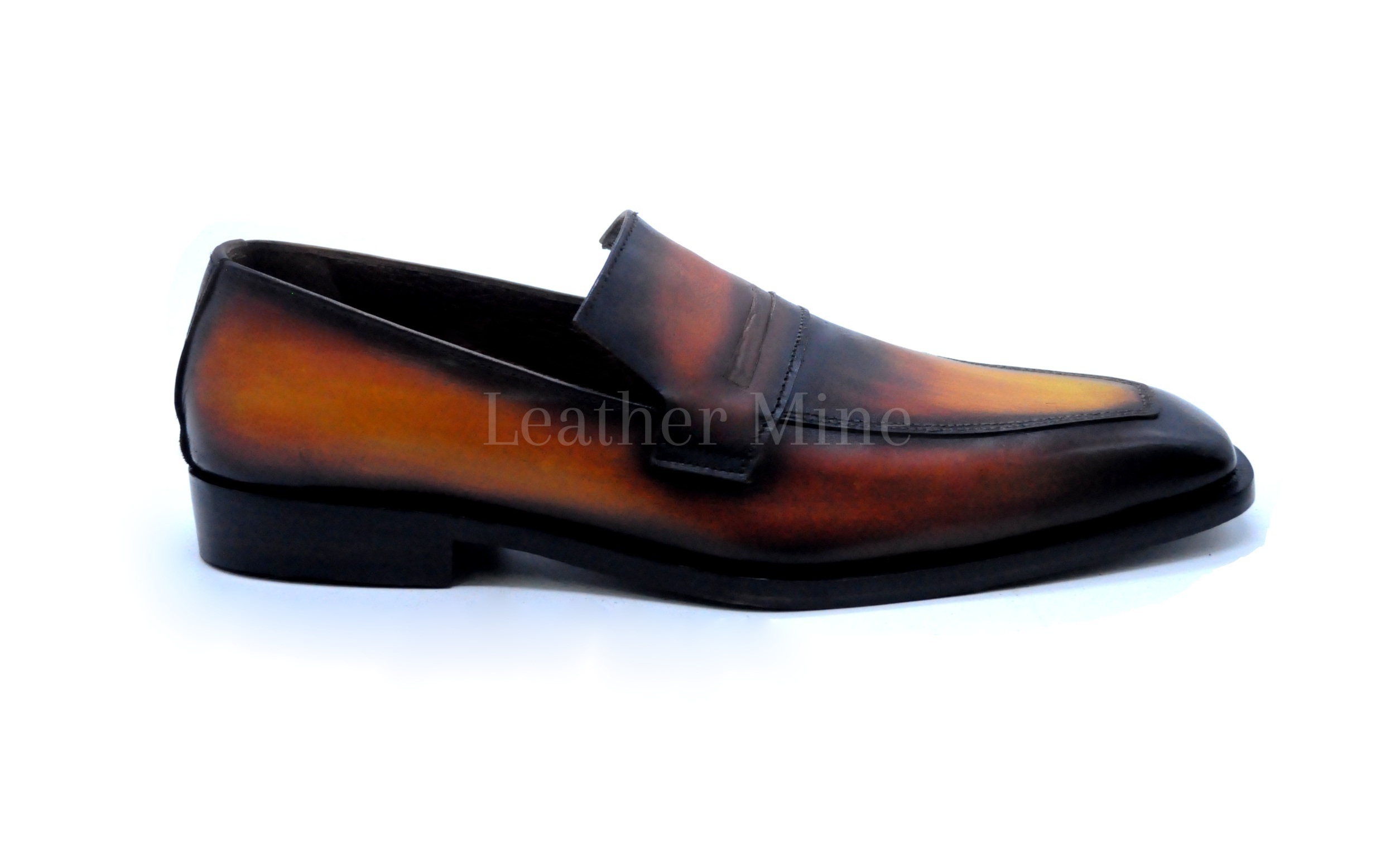 Handmade Tan Patina Loafers Custom Made Shoes, Leather Formal Shoes Mens