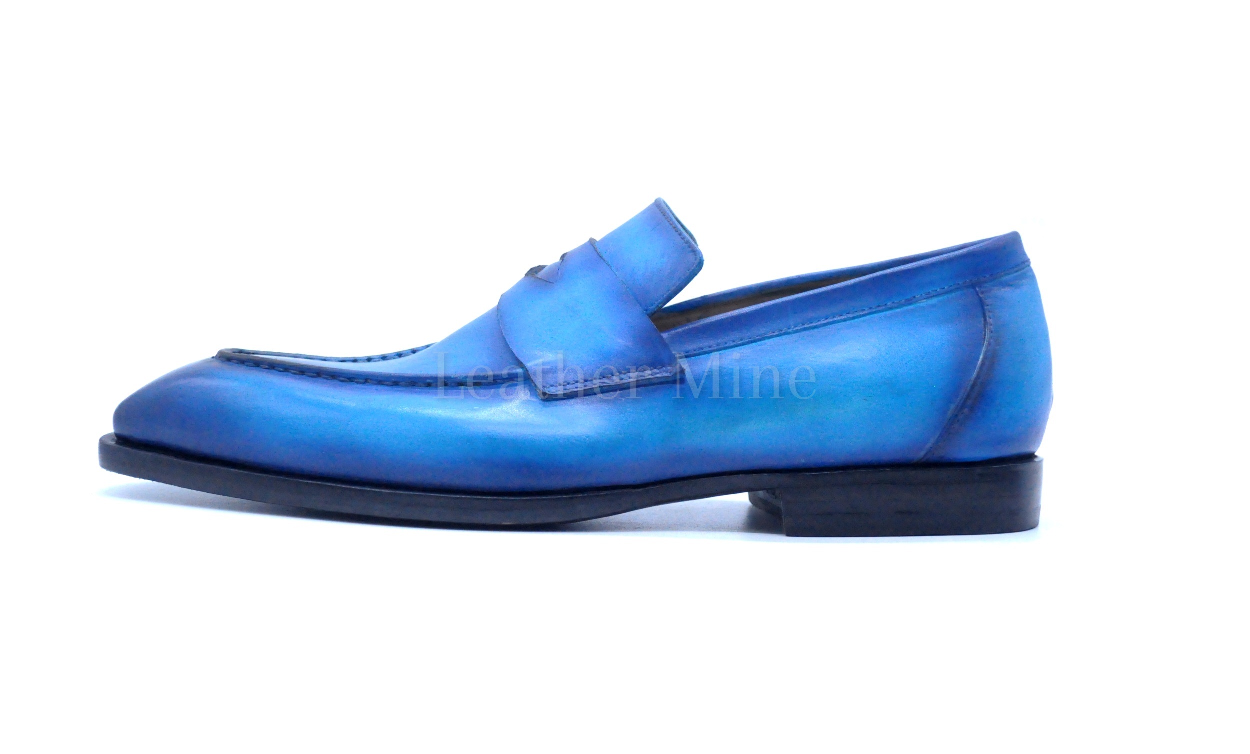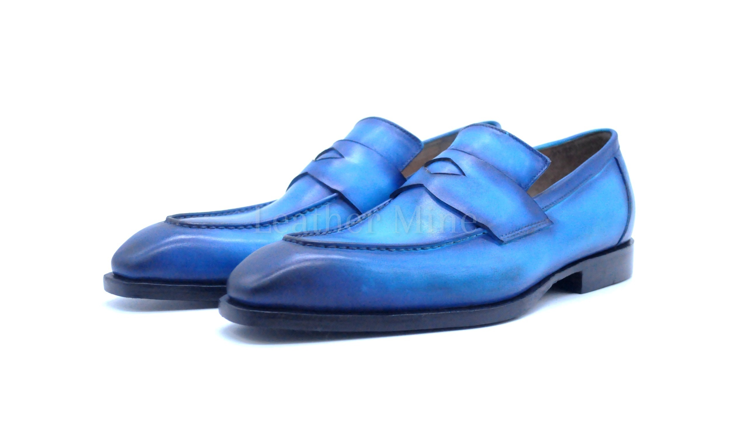 Handmade Men's Blue Patina Loafers Leather Dress Custom Shoes