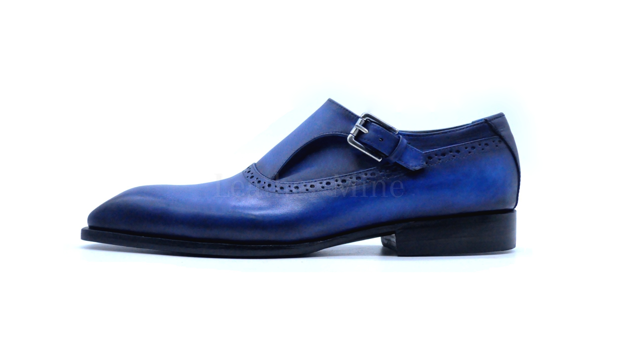 Handmade Men's Blue Patina Leather Monk Strap Dress Custom Made Shoes