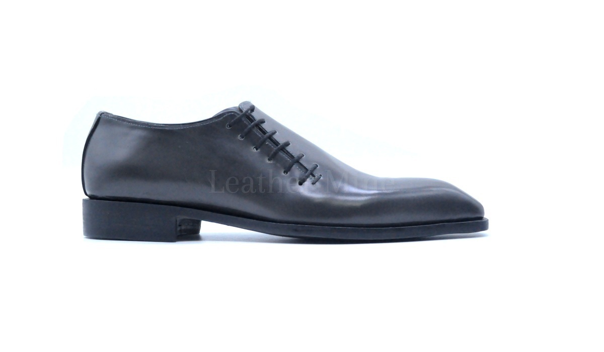 Handmade Gray Leather Whole Cut Oxfords Shoes, Leather Formal Shoes Mens
