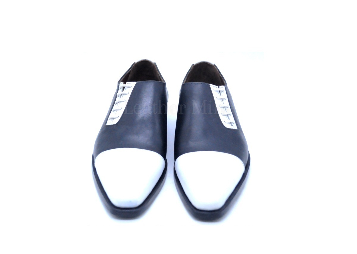 Handmade Black and White Leather Oxfords Shoes, Leather Dress Shoes Mens