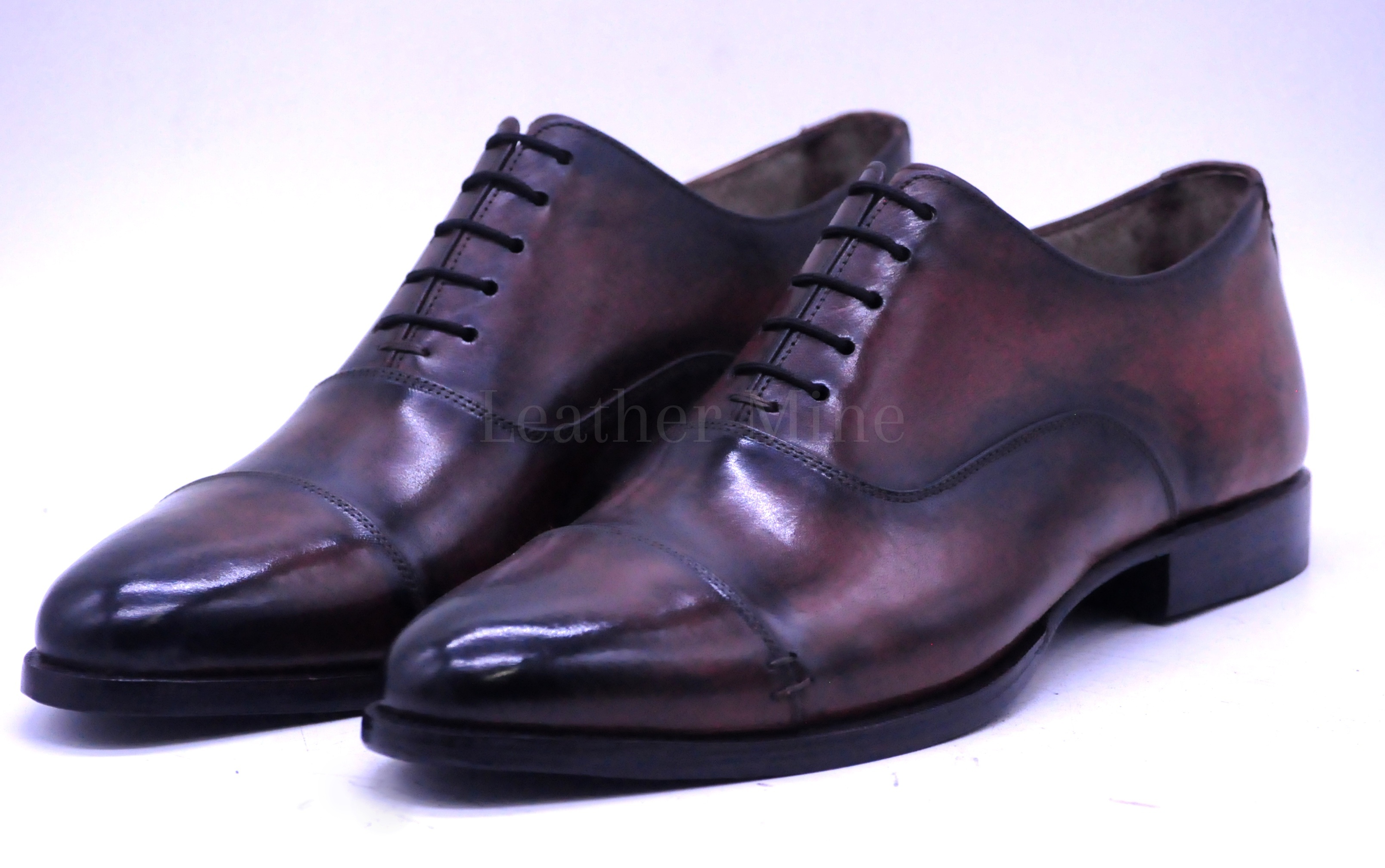 Handmade Ox Blood Oxfords Dress Shoes, Genuine Leather Formal Shoes