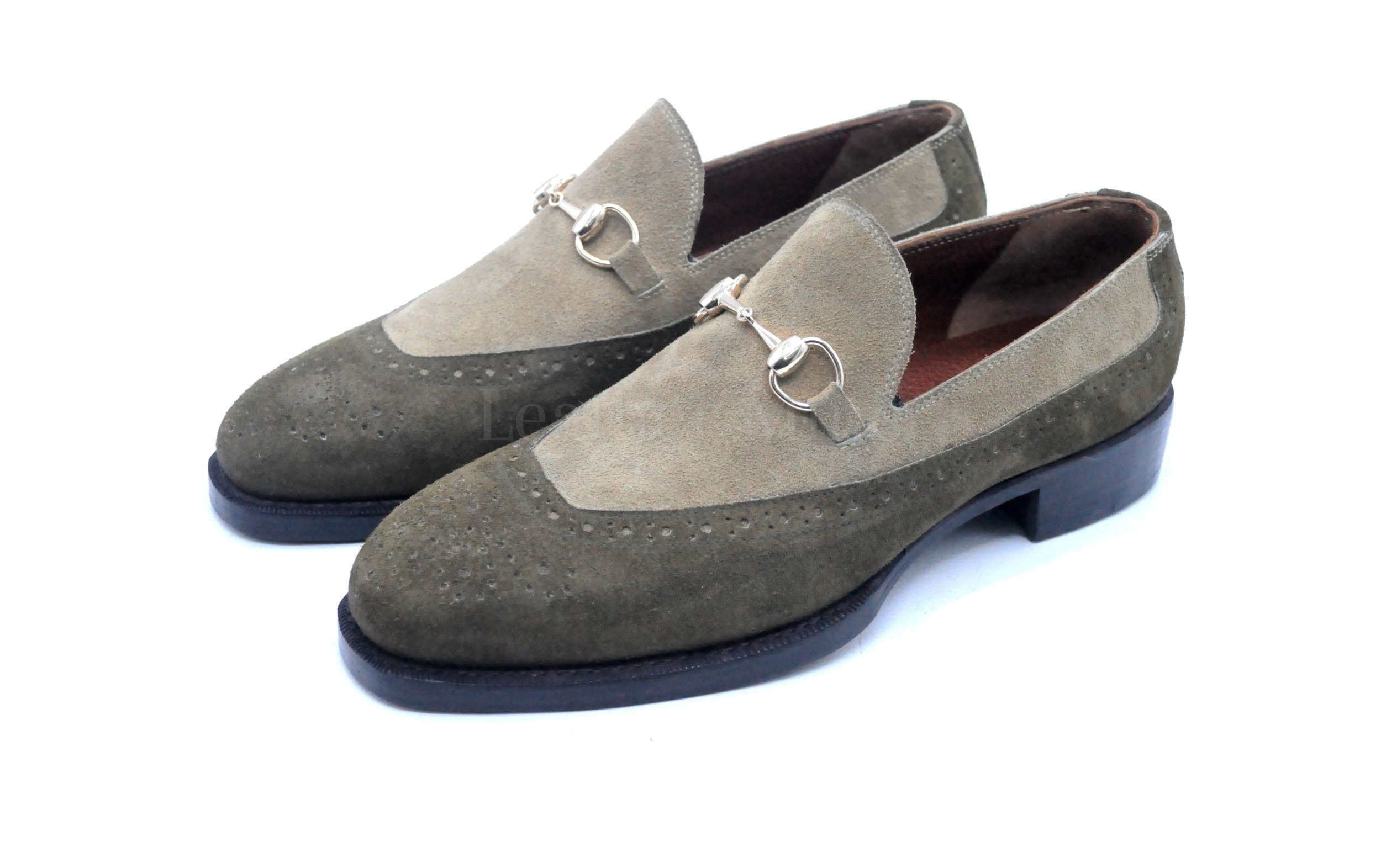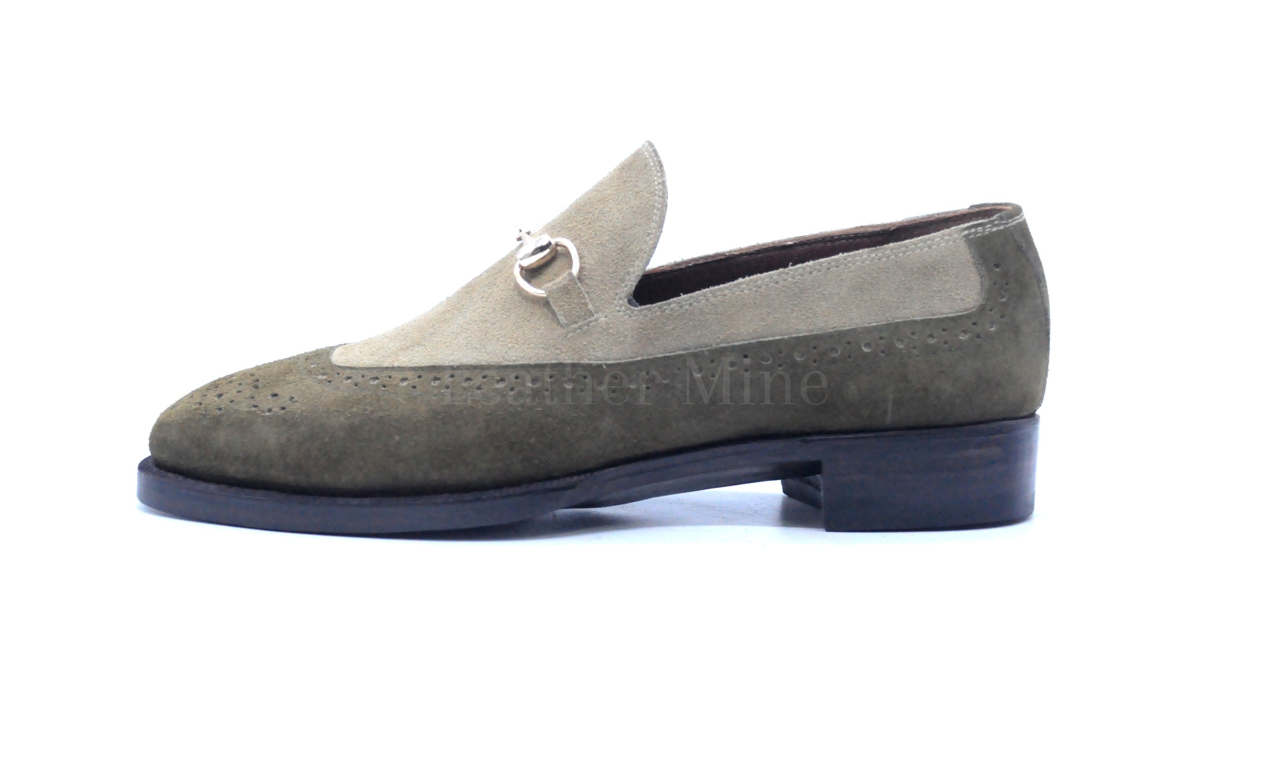 Green Suede Handmade Leather Loafers Dress Formal Shoes For Men