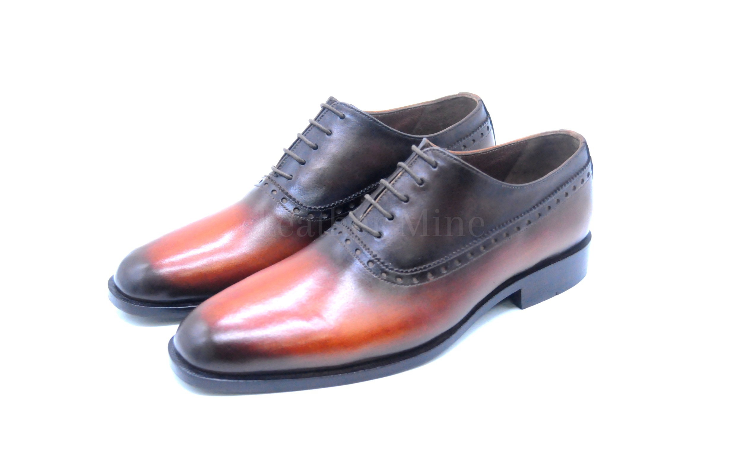 Leather Tan Patina Oxfords shoes Men's, Handmade Formal Custom Shoes