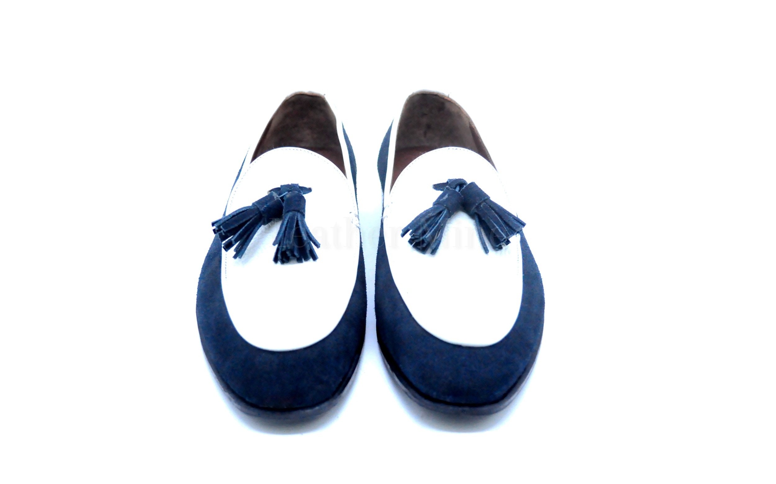 Blue Suede Loafers Dress Shoes For Men, Genuine Leather Custom Shoes