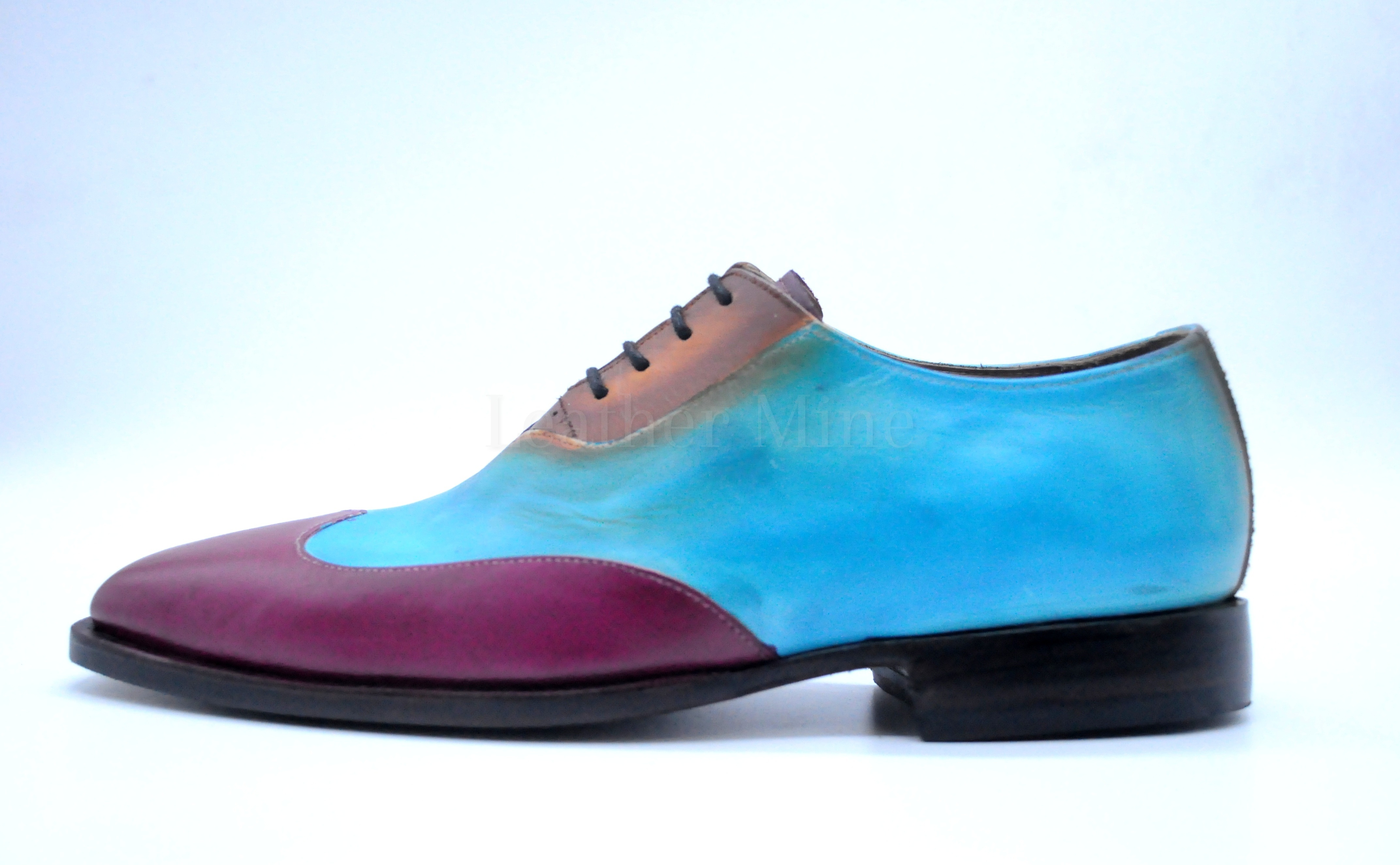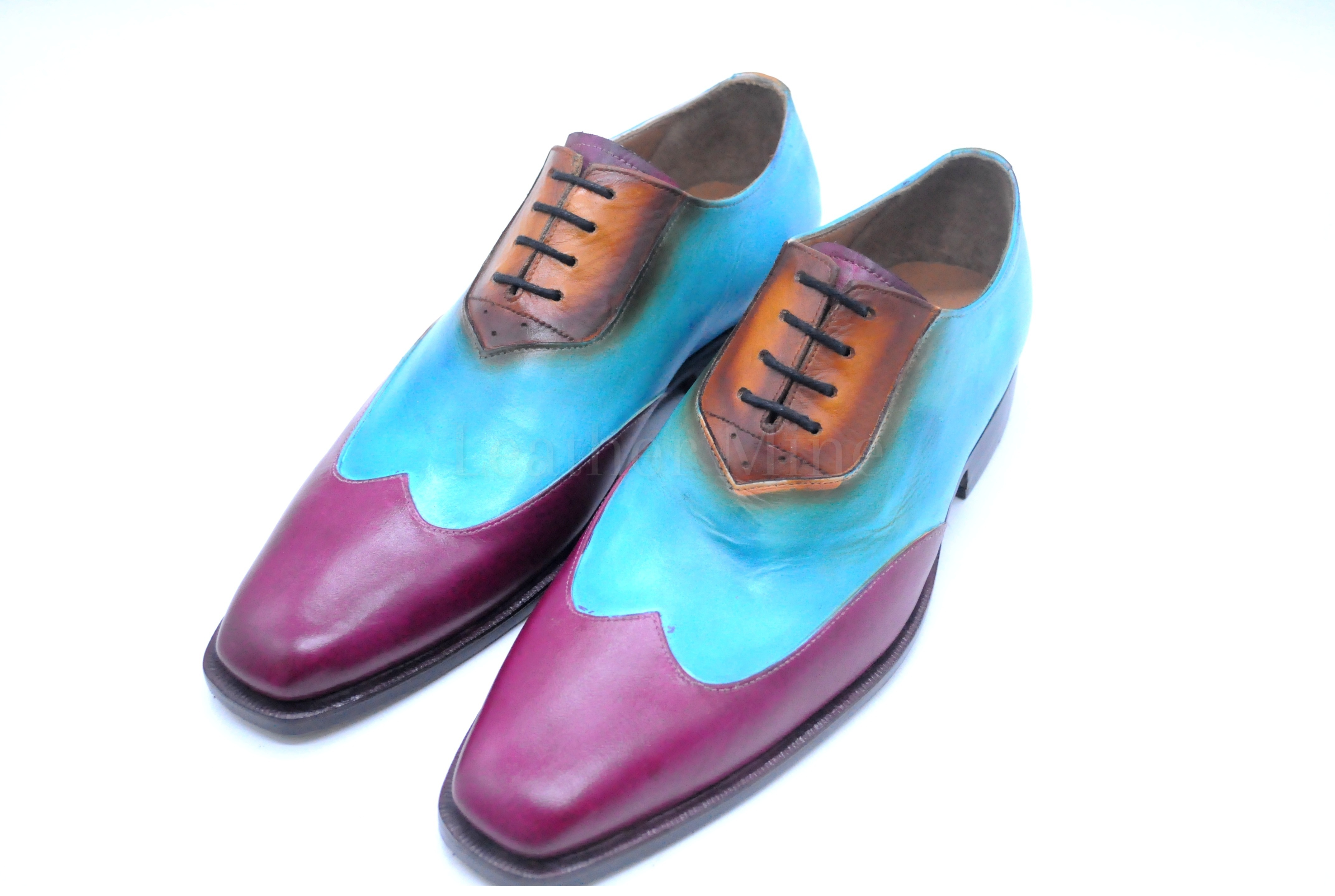 Leather Blue Patina Wingtip shoes Men's, Handmade Formal Custom Shoes