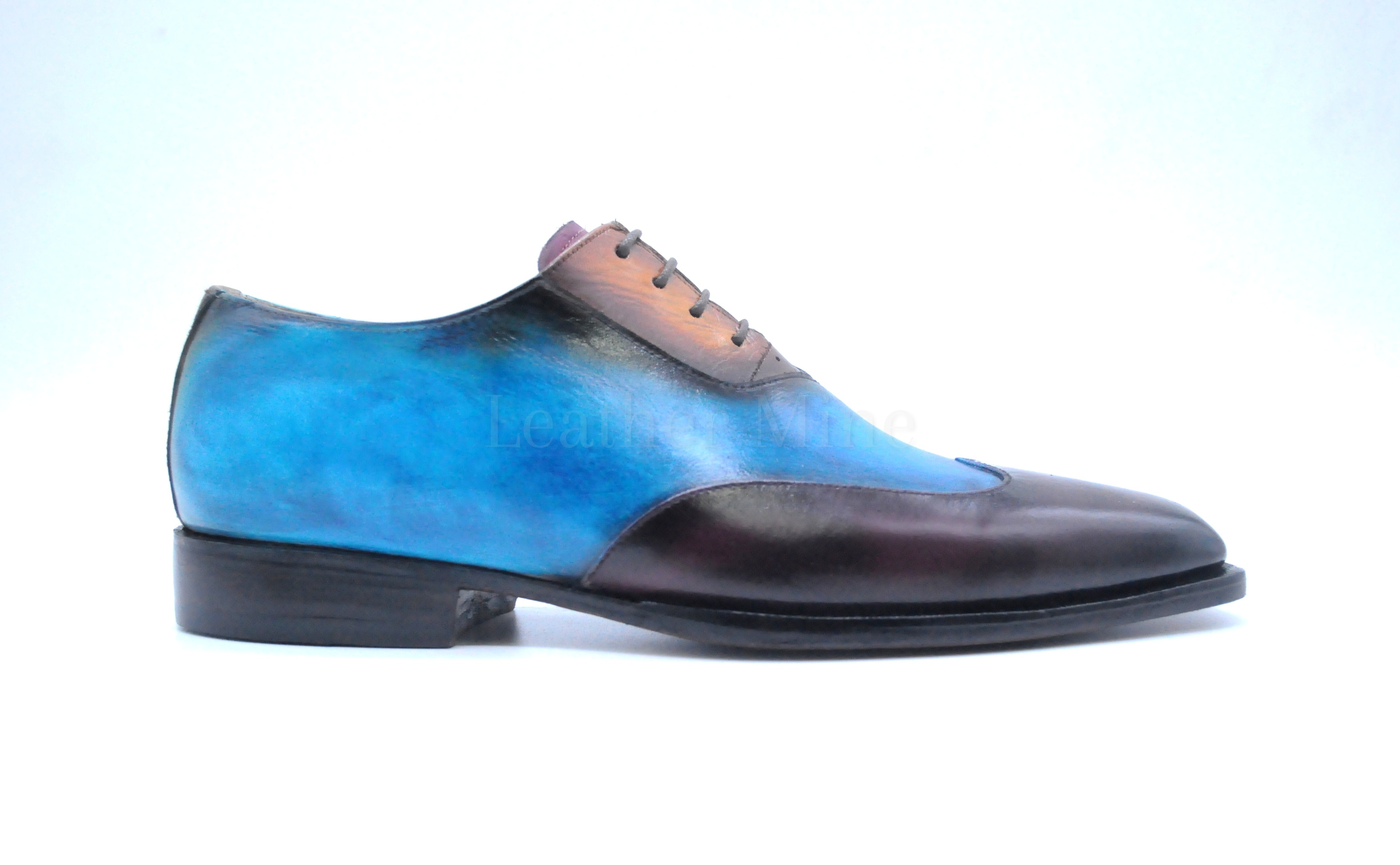 Leather Blue Patina Oxfords shoes Men's, Handmade Dress Custom Shoes
