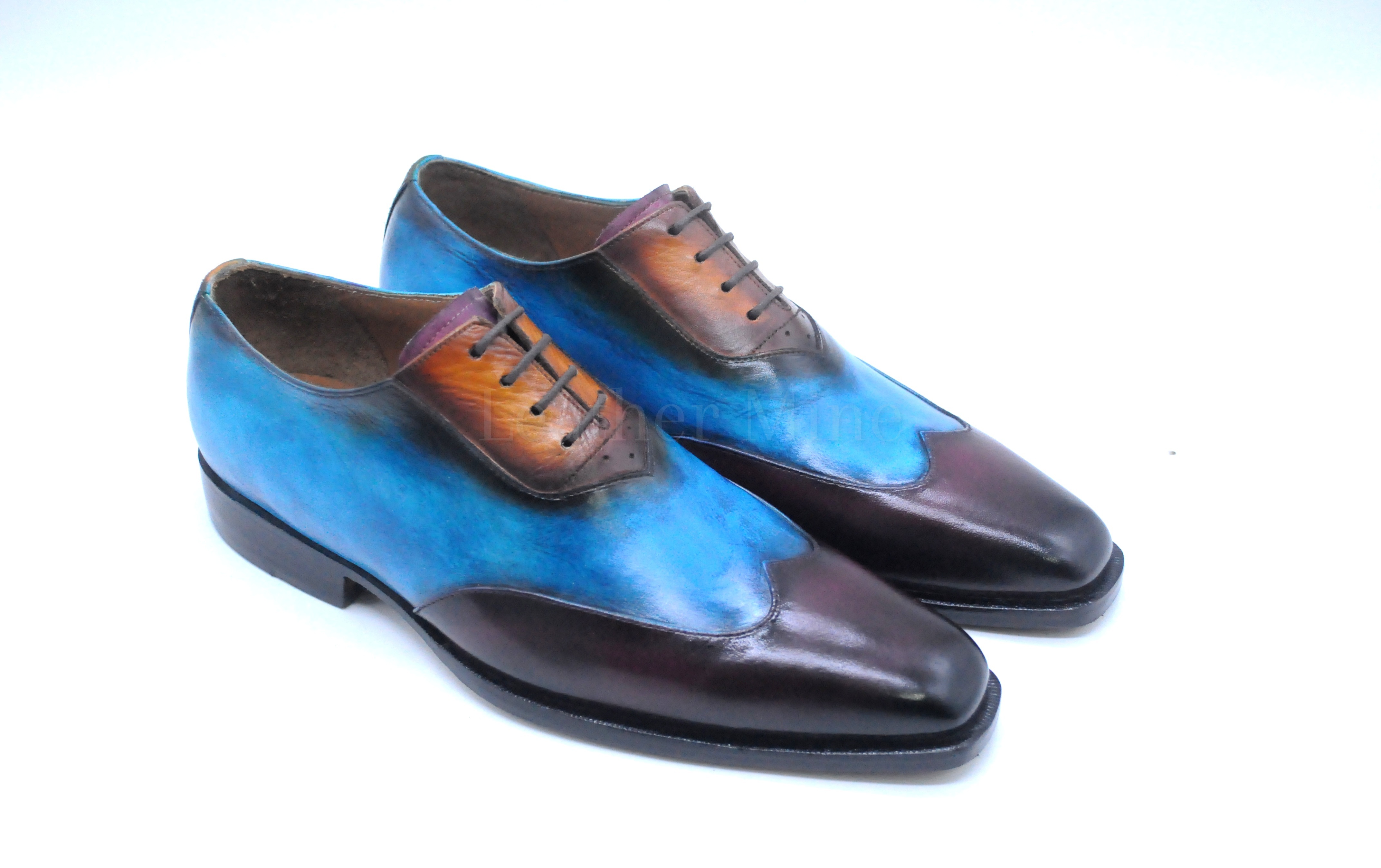 Handmade Blue Patina Wingtip Dress Shoes, Genuine Leather Dress Shoes