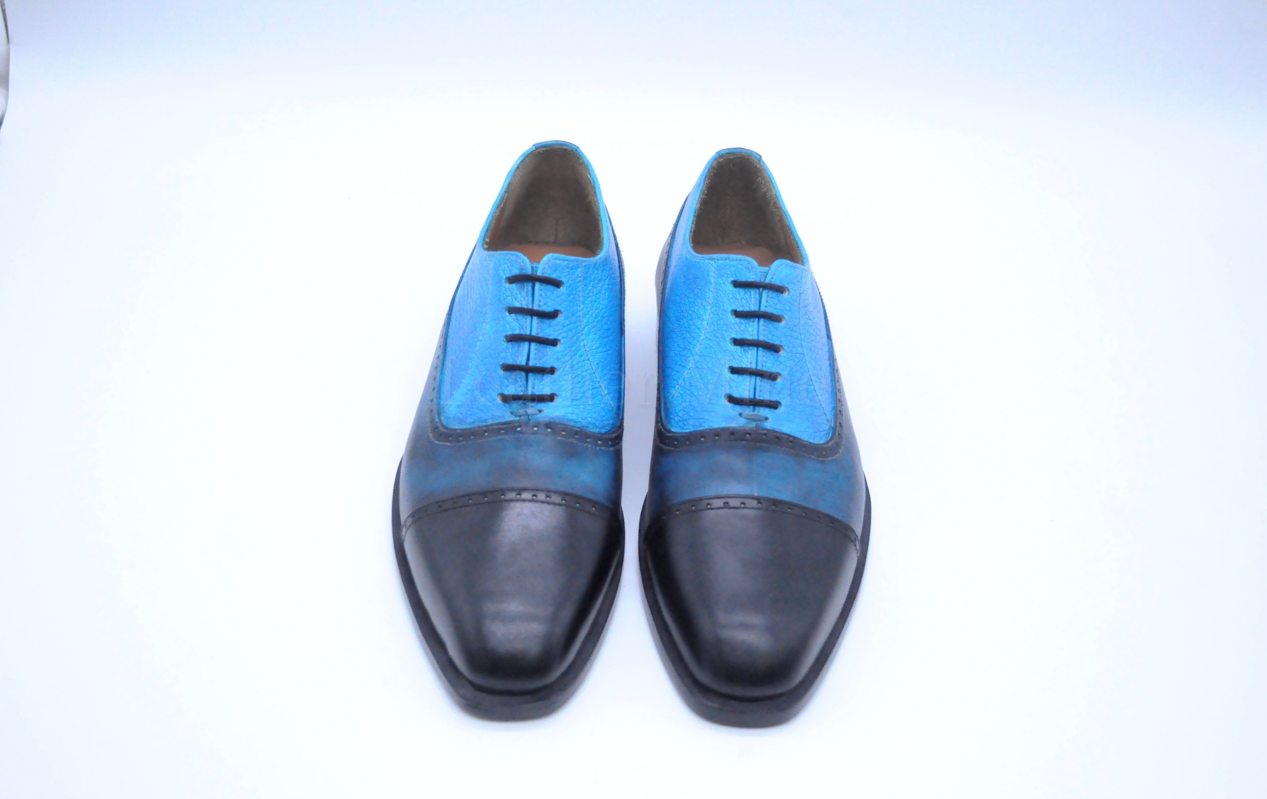 Blue Patina Oxfords Dress Shoes For Men, Genuine Leather Custom Shoes
