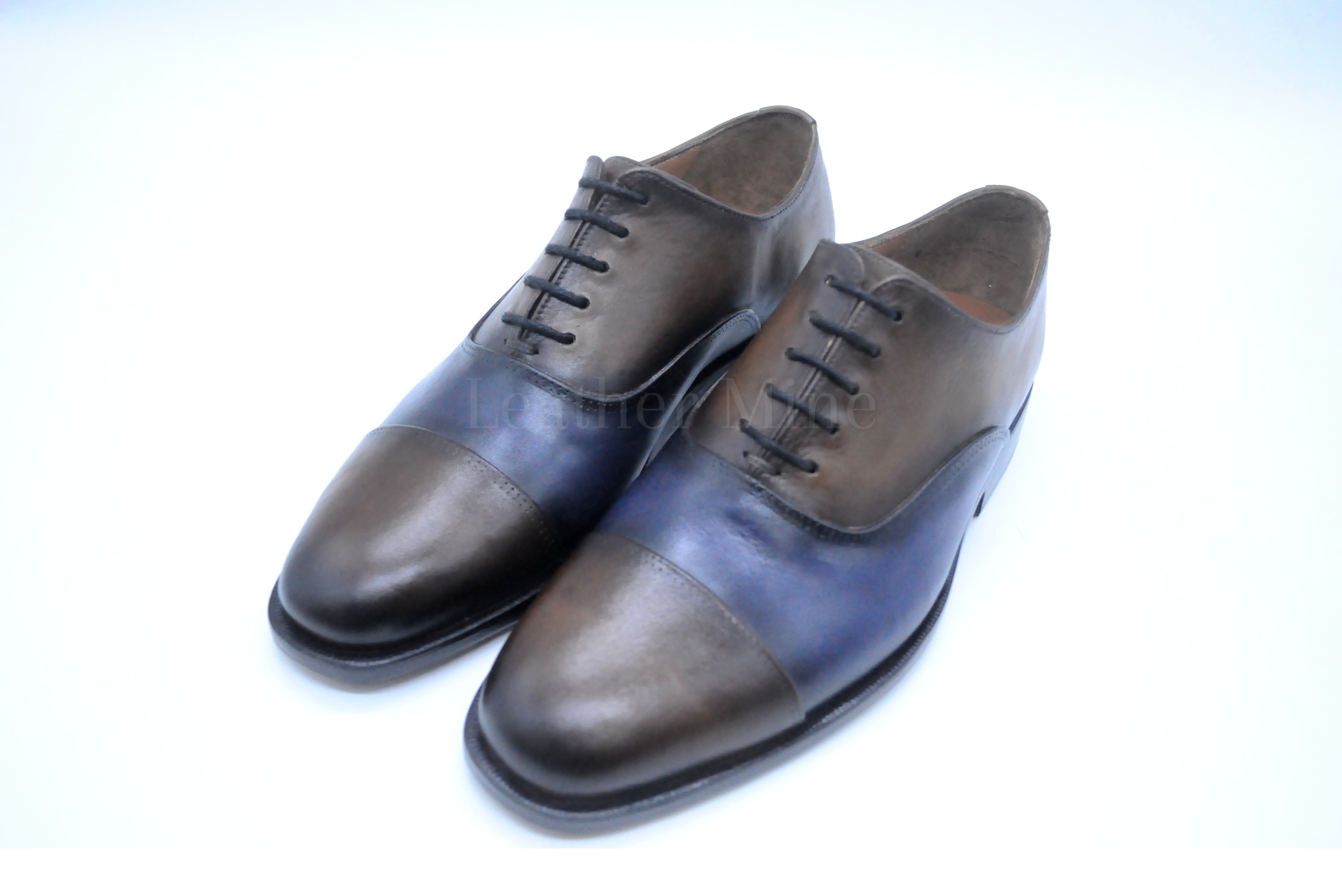 Men's Handmade Brown Leather Two tone Dress Oxfords Shoes For Men