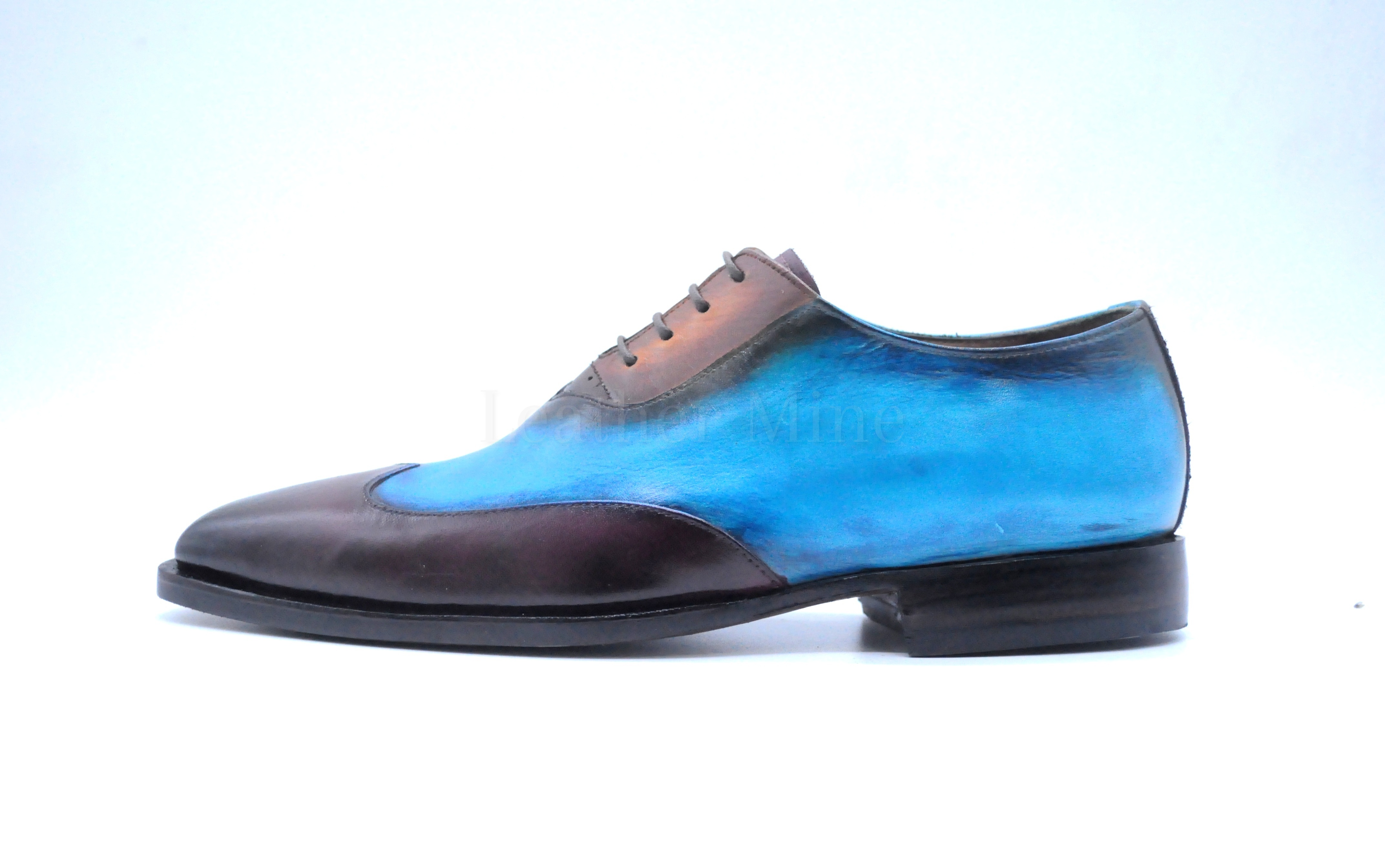Men's Handmade Blue Patina Formal Wingtip Custom Made Shoes For Men