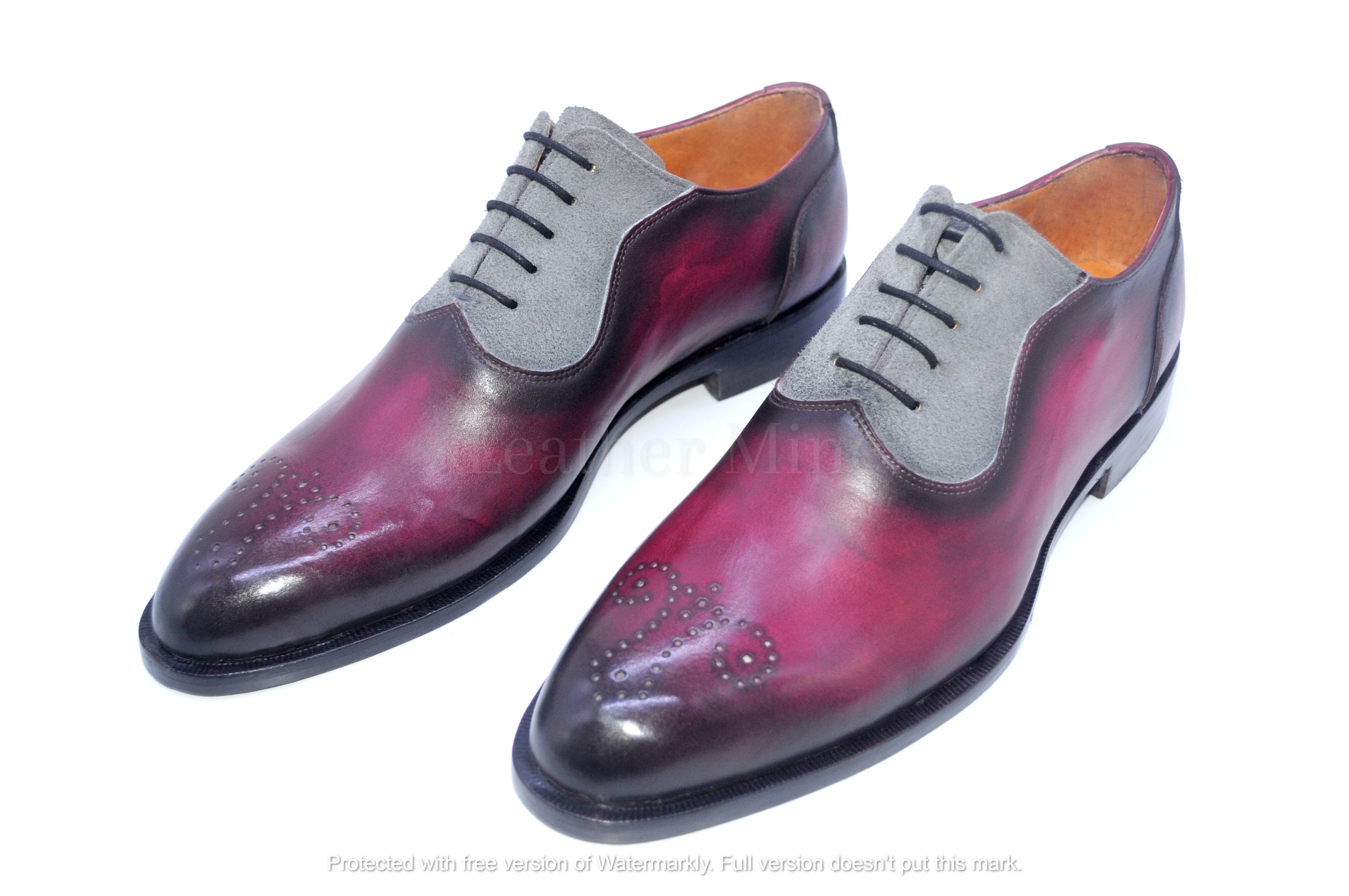 Handmade Burgundy Patina Oxfords Dress Shoes, Genuine Leather Formal Shoes
