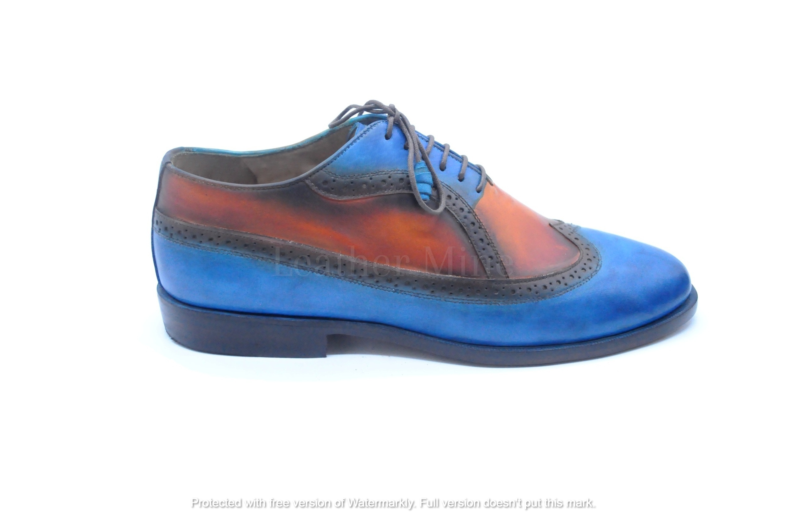 Leather Dress Shoes Men's Handmade Blue Patina Oxfords Formal Shoes