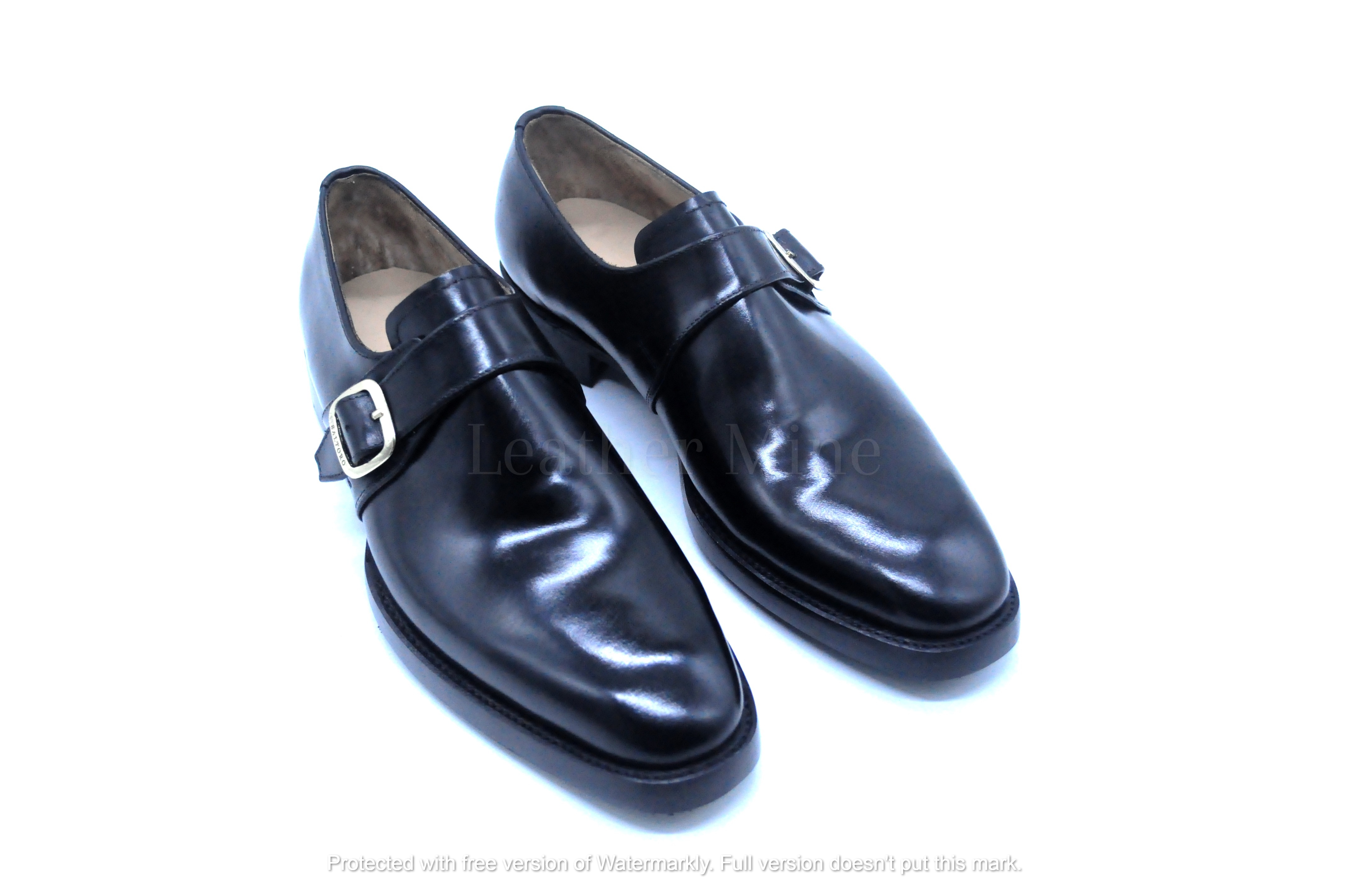 Black Monk Strap Dress Shoes For Men, Genuine Leather Custom Shoes