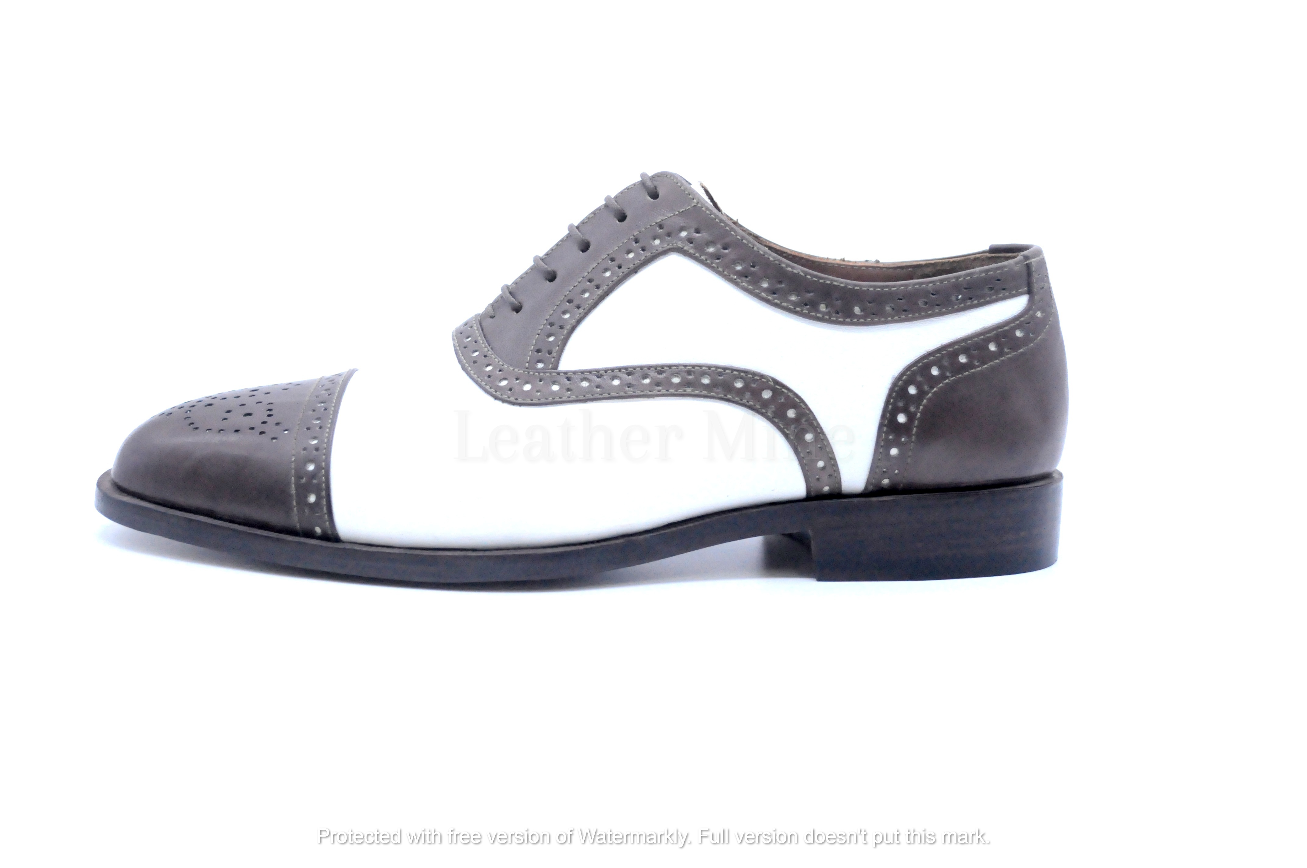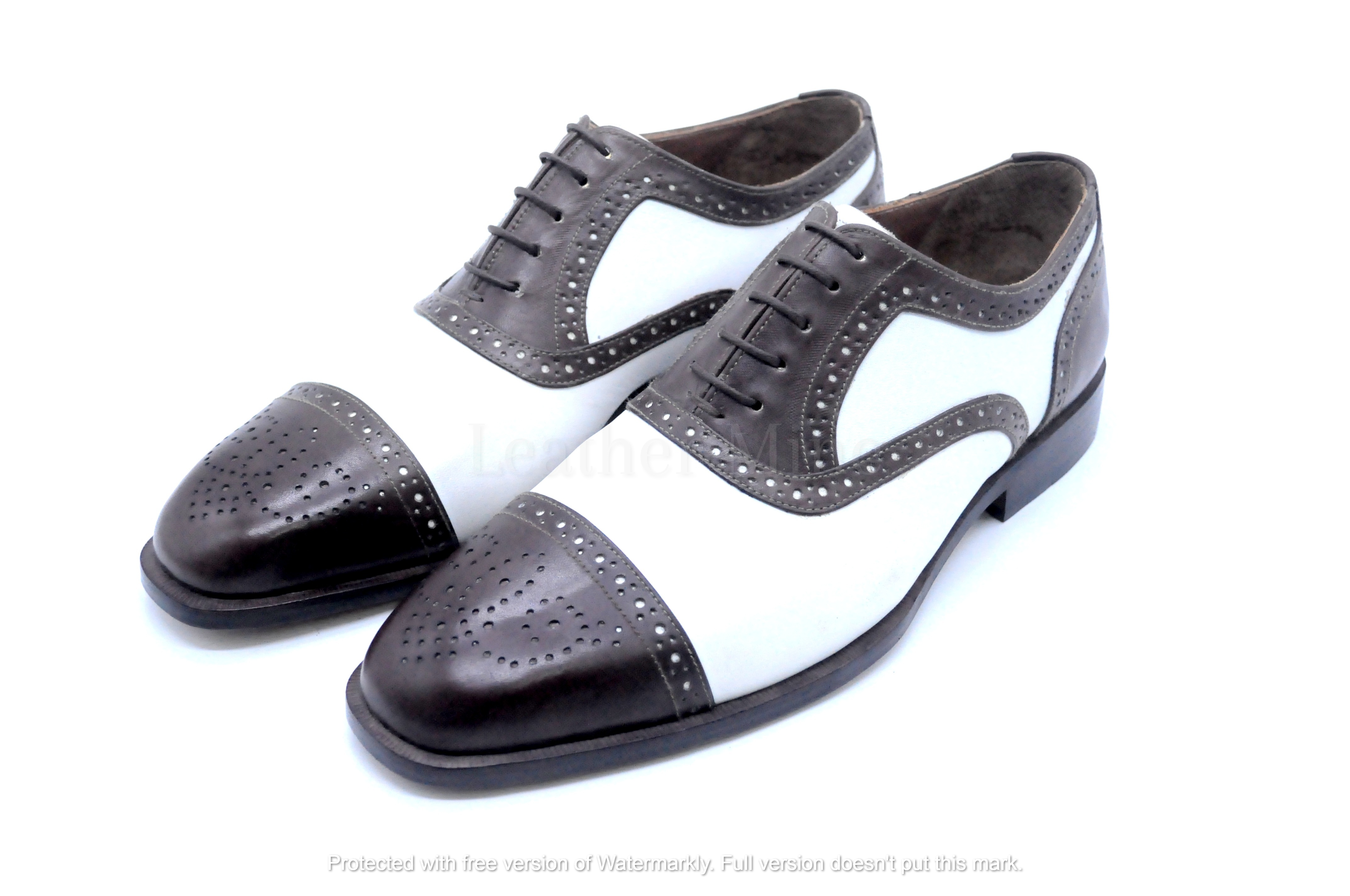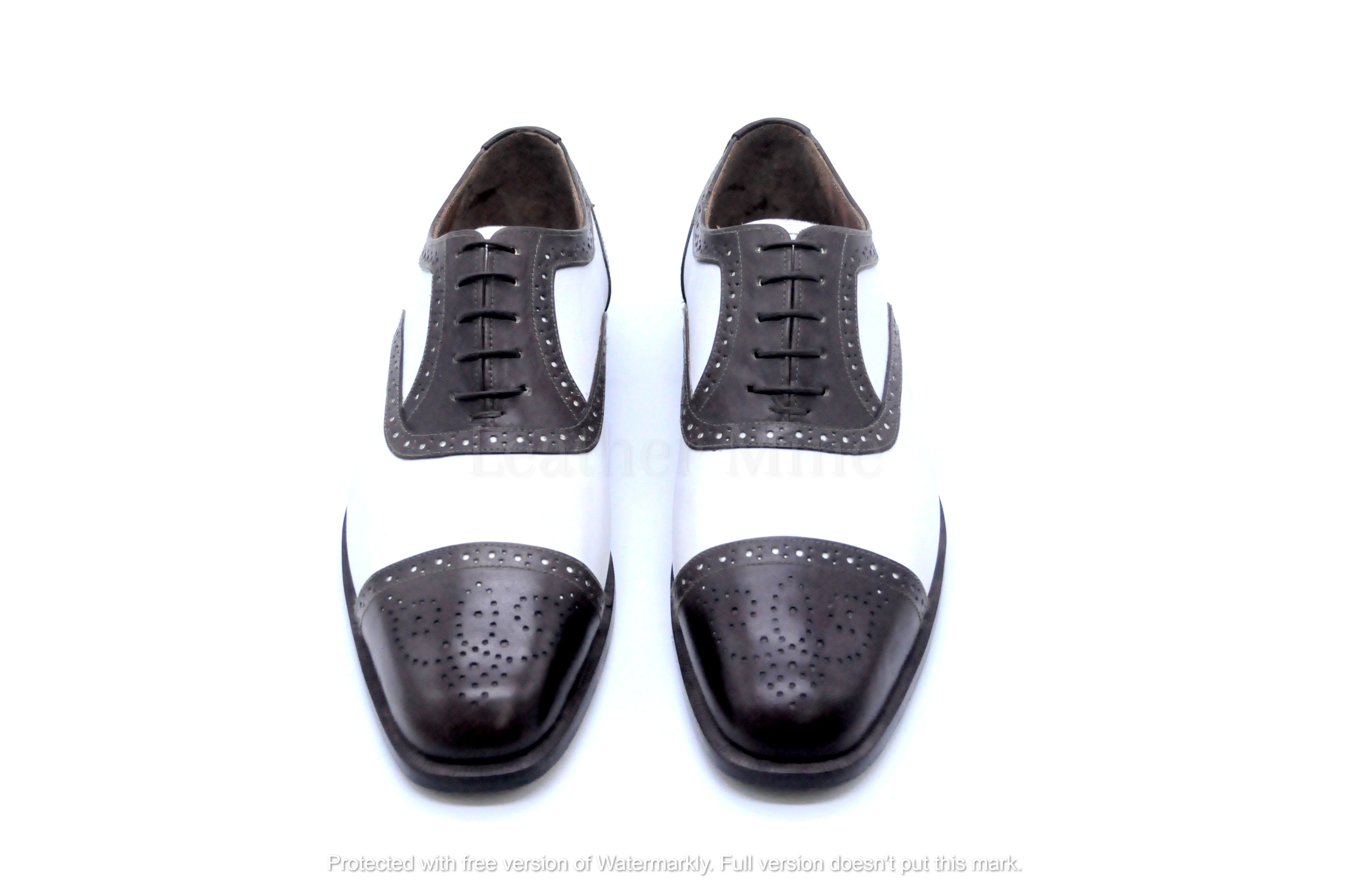 Leather Dress Shoes Men's Handmade Two Tone Oxfords Formal Shoes