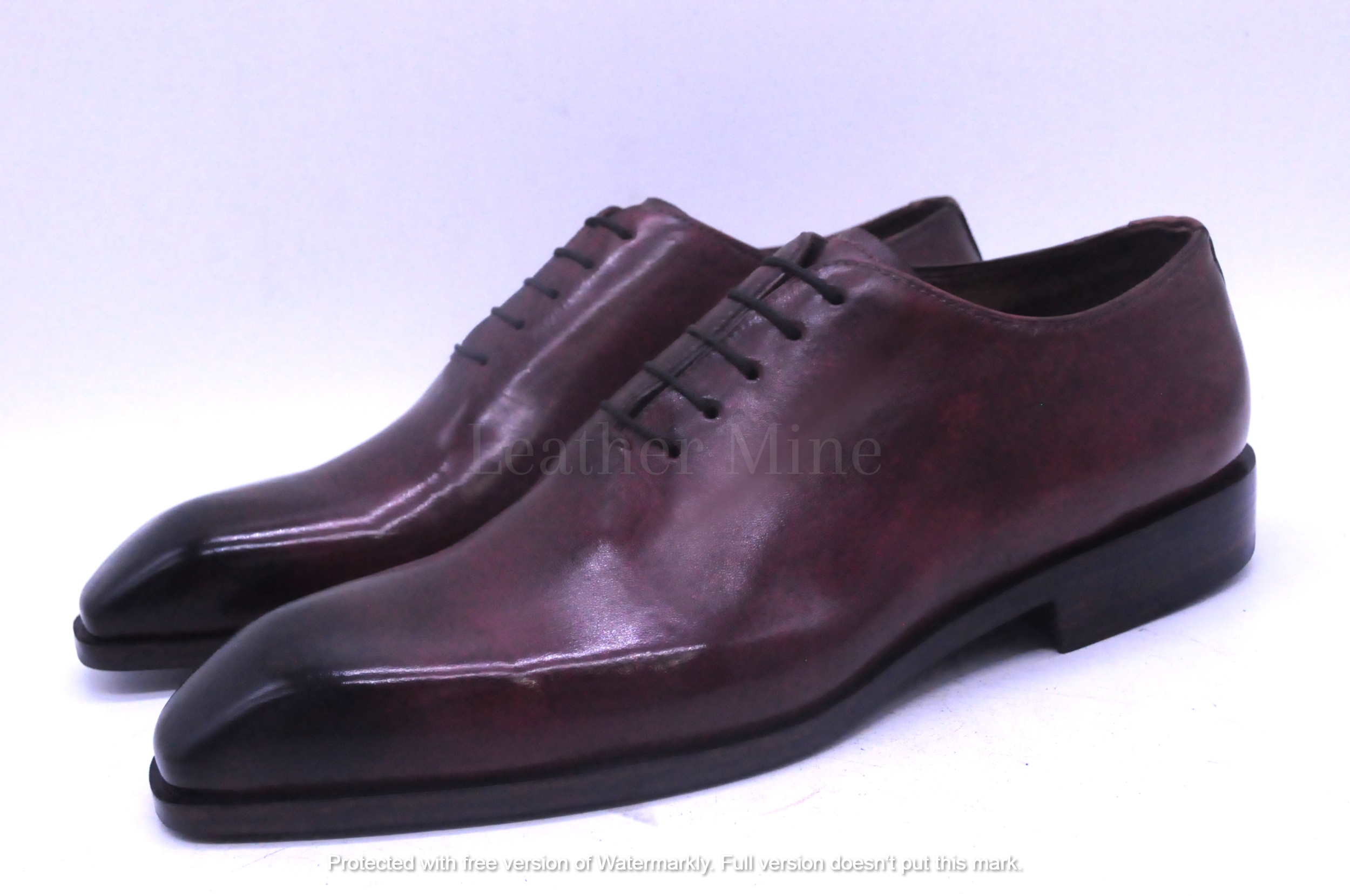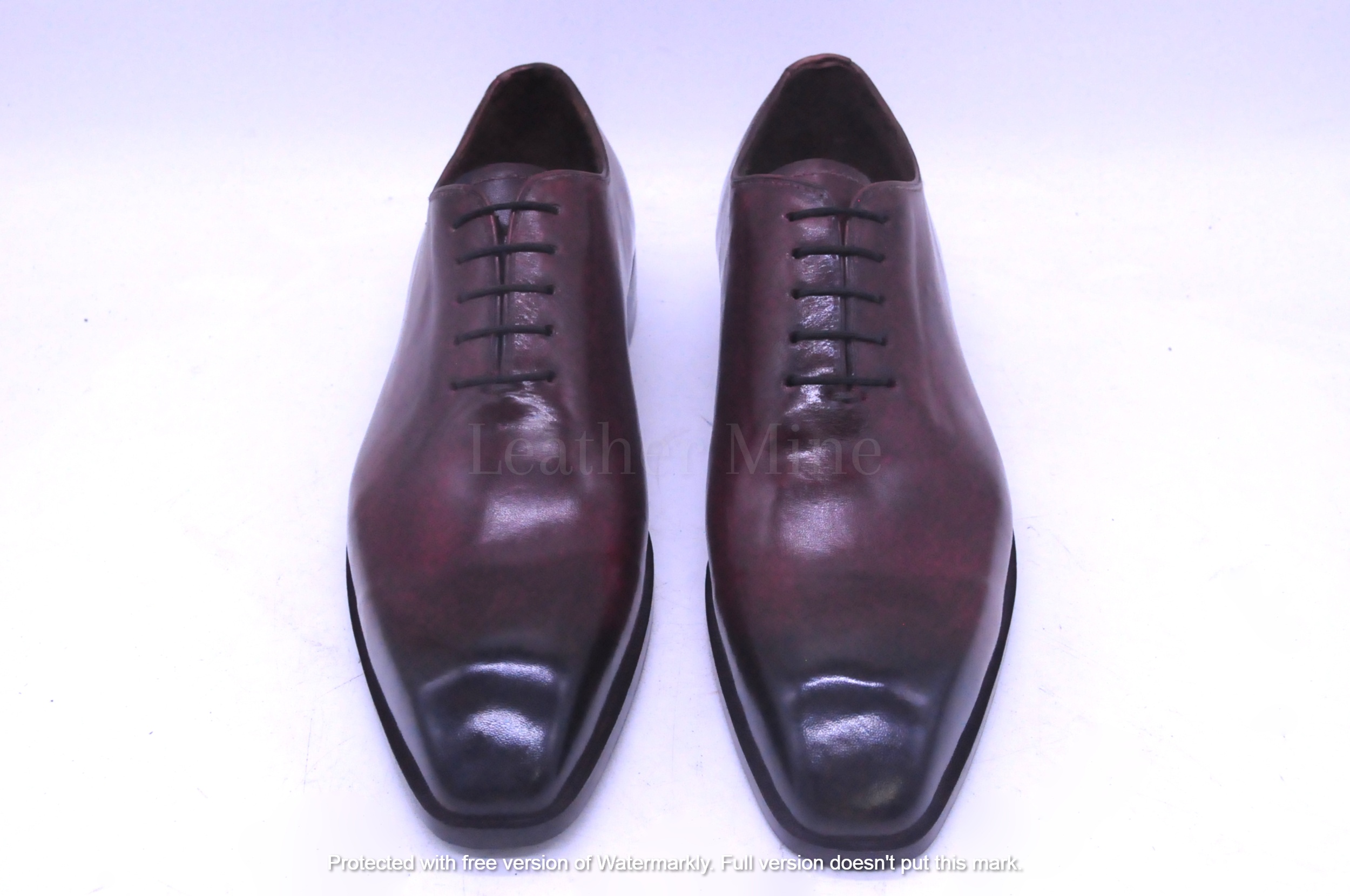 Red Patina Oxfords Dress Shoes For Men, Genuine Leather Custom Shoes