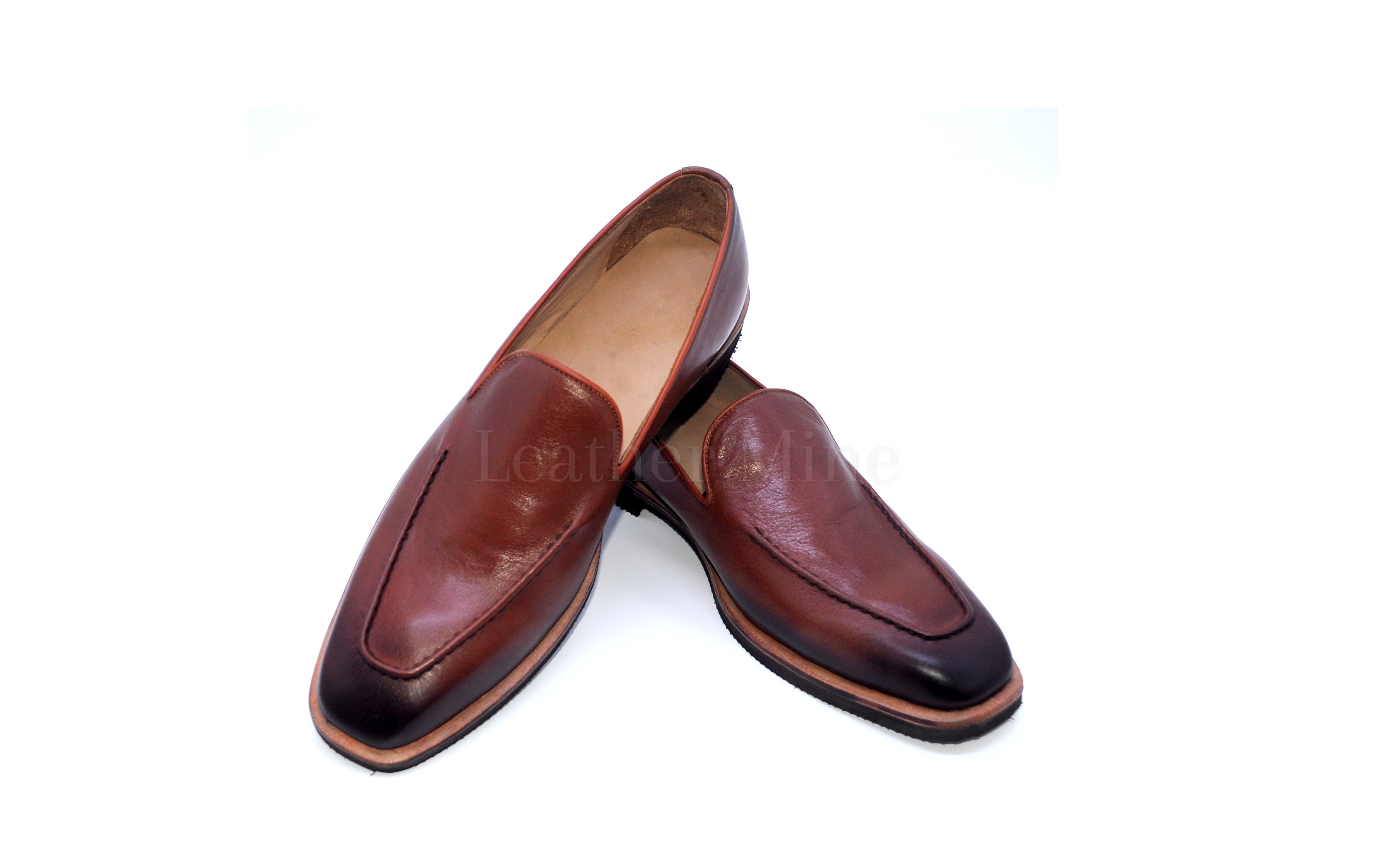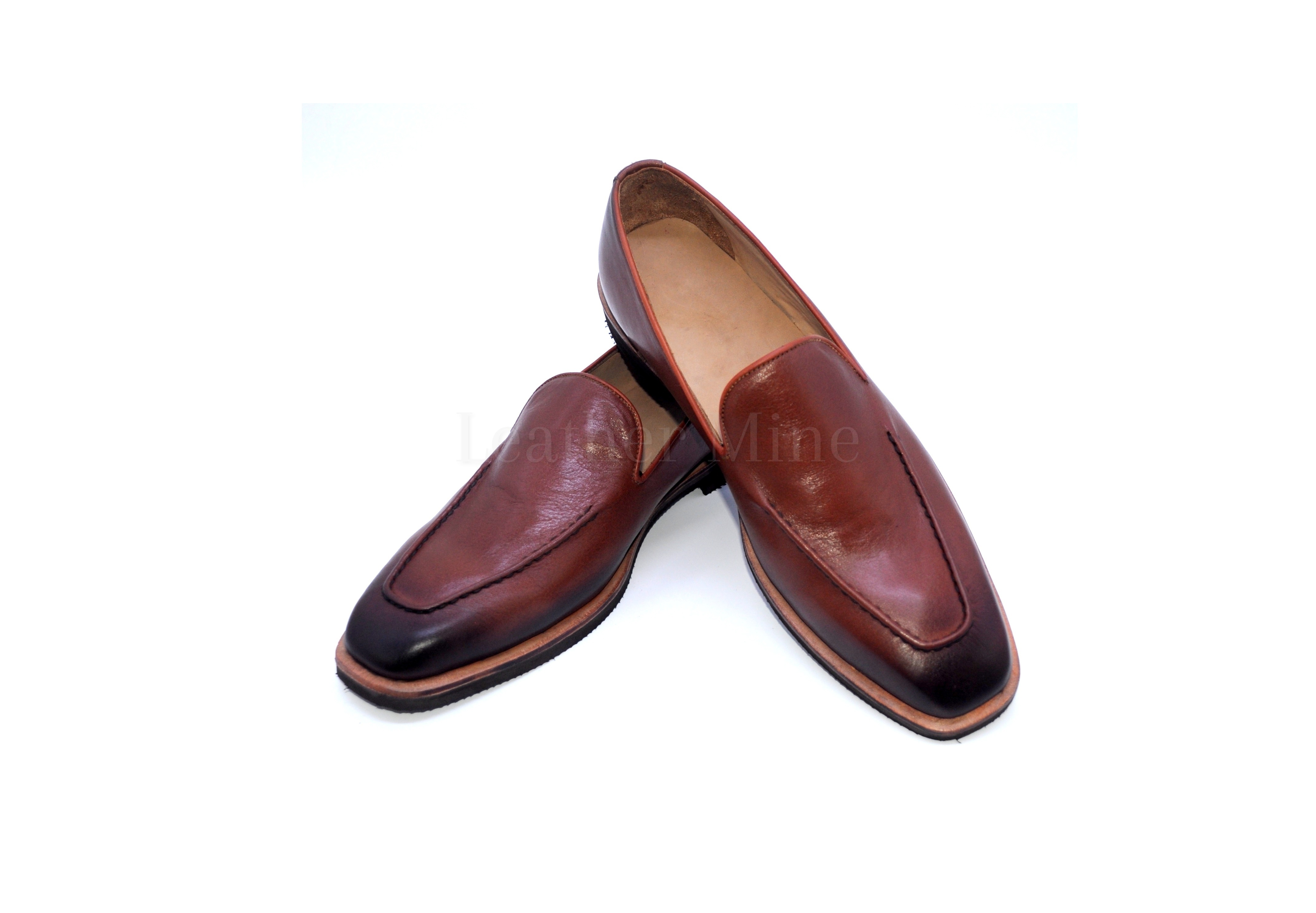 Leather Brown Patina Loafers shoes Men's, Handmade Formal Custom Shoes
