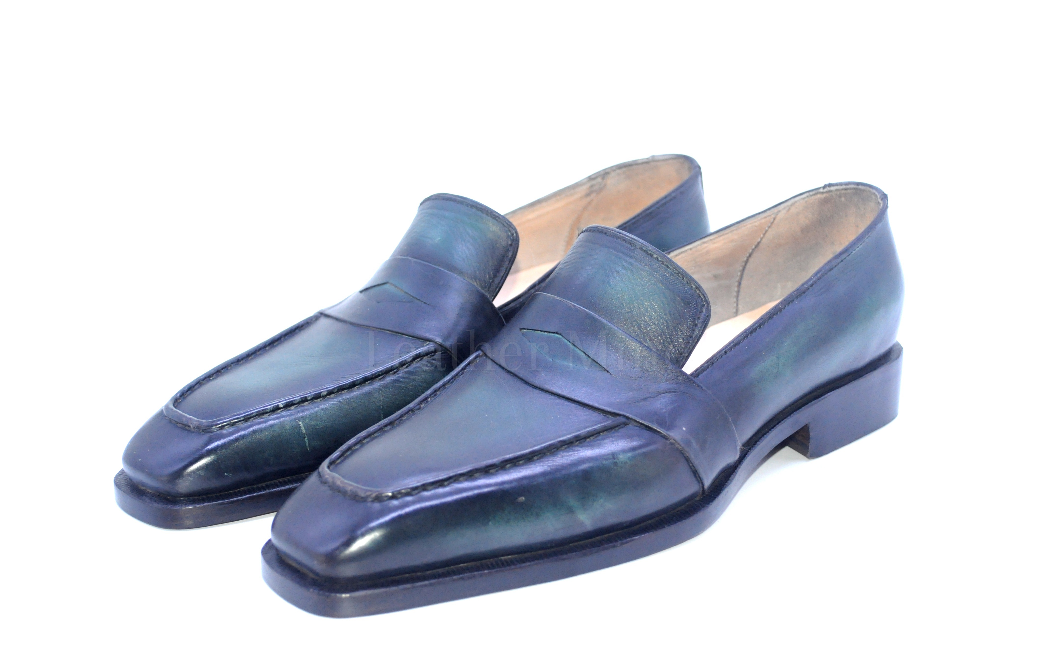 Leather Gray Patina Loafers shoes Men's, Handmade Formal Custom Shoes