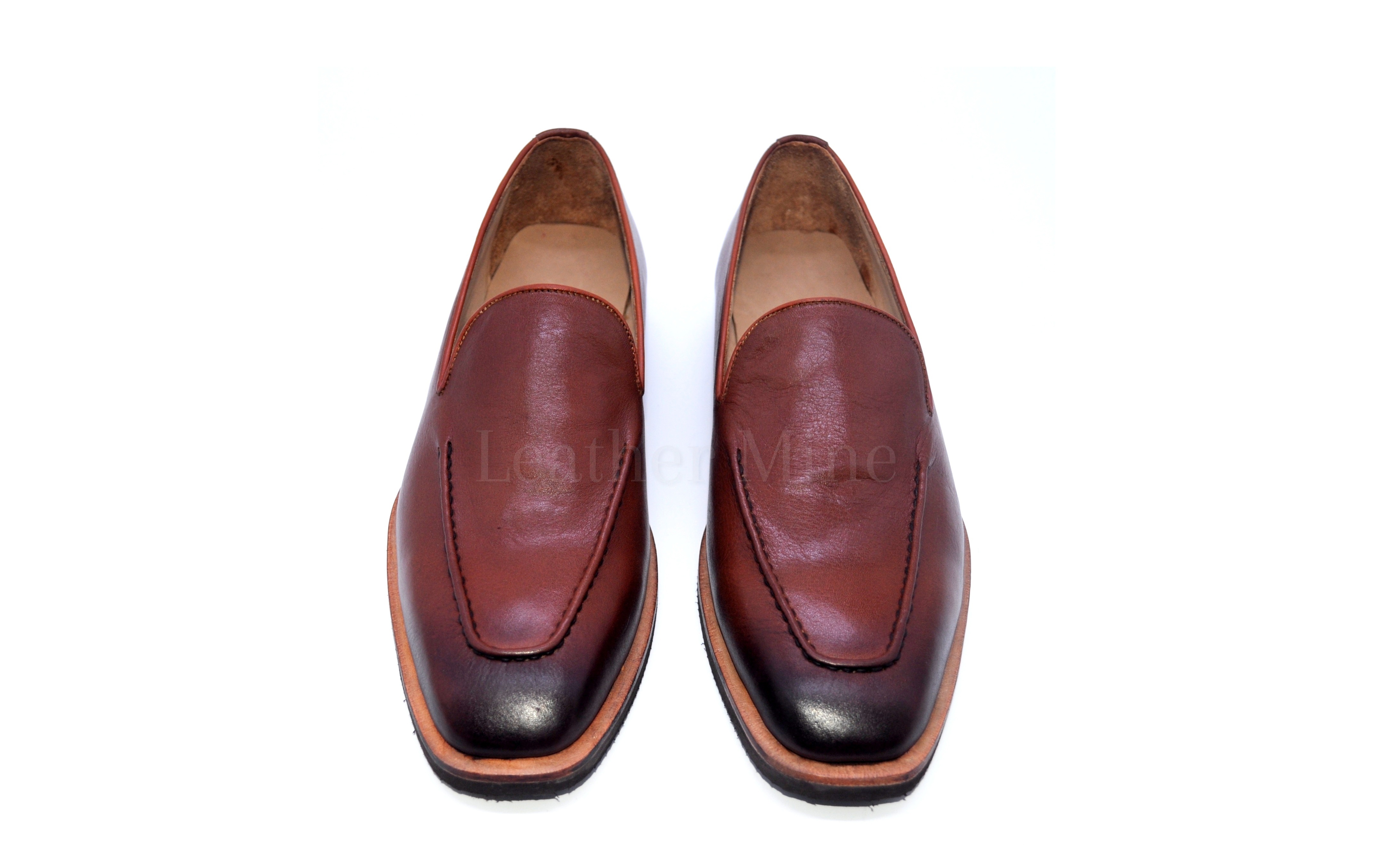 Handmade Brown Patina Loafers Dress Shoes, Genuine Leather Formal Shoes