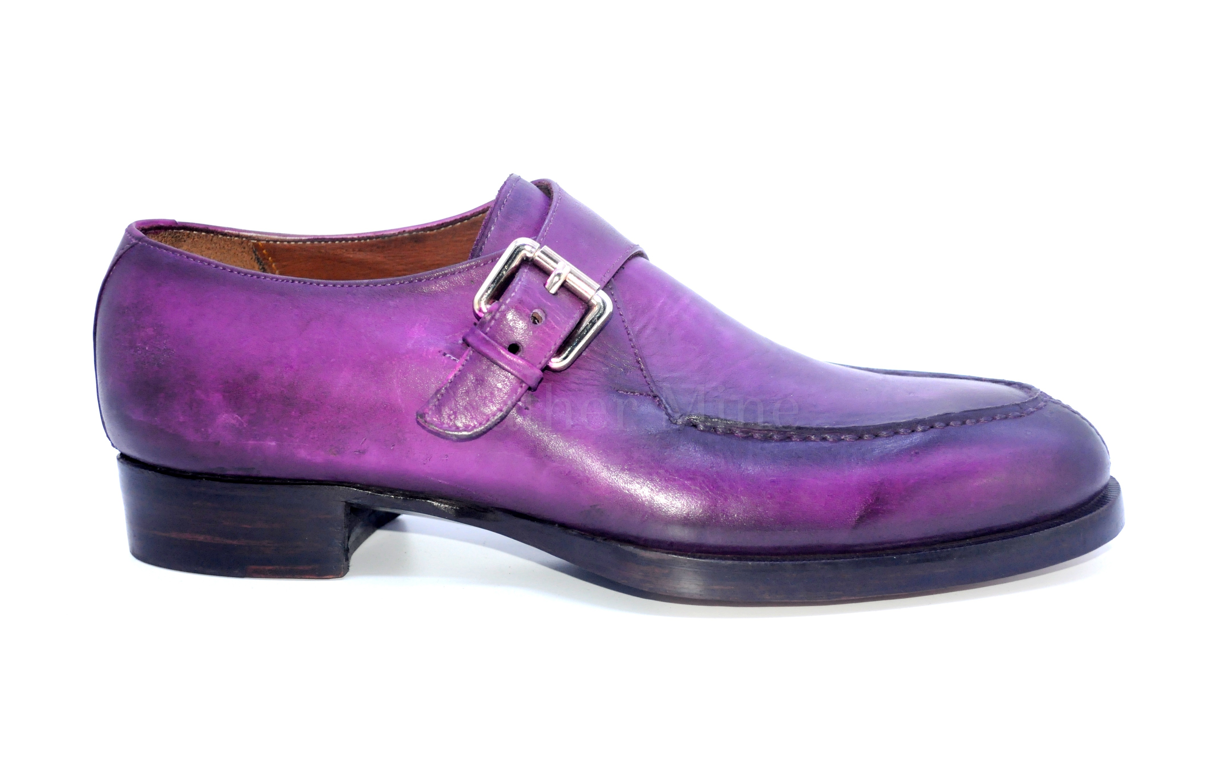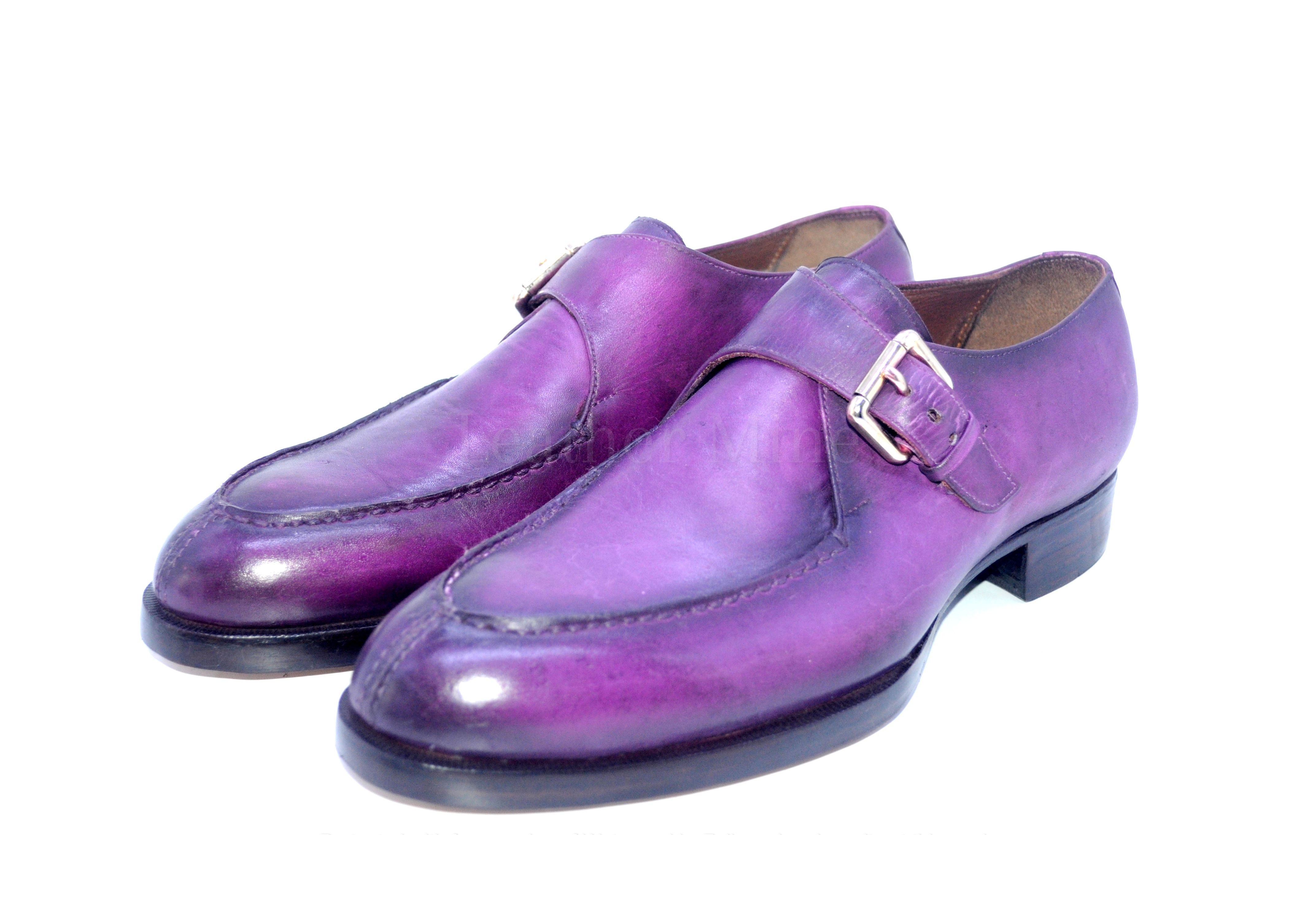 Purple Patina Monk Strap Dress Shoes For Men, Genuine Leather Custom Shoes