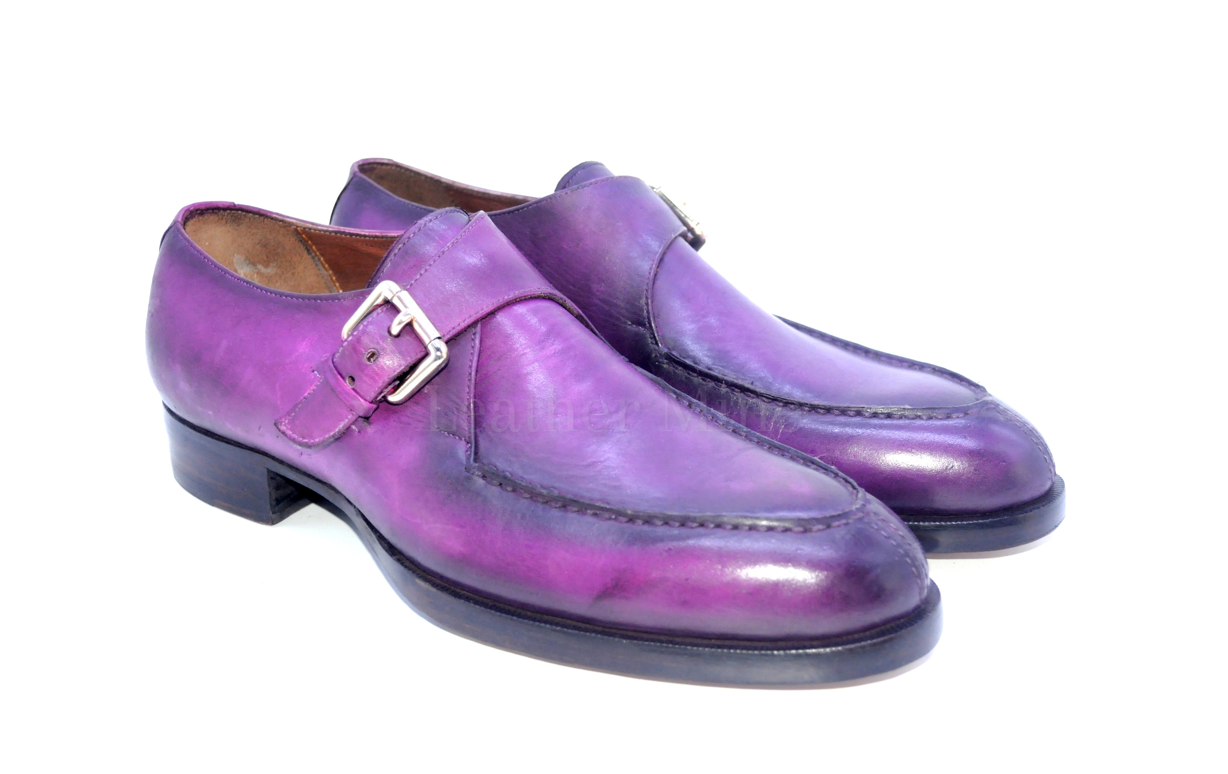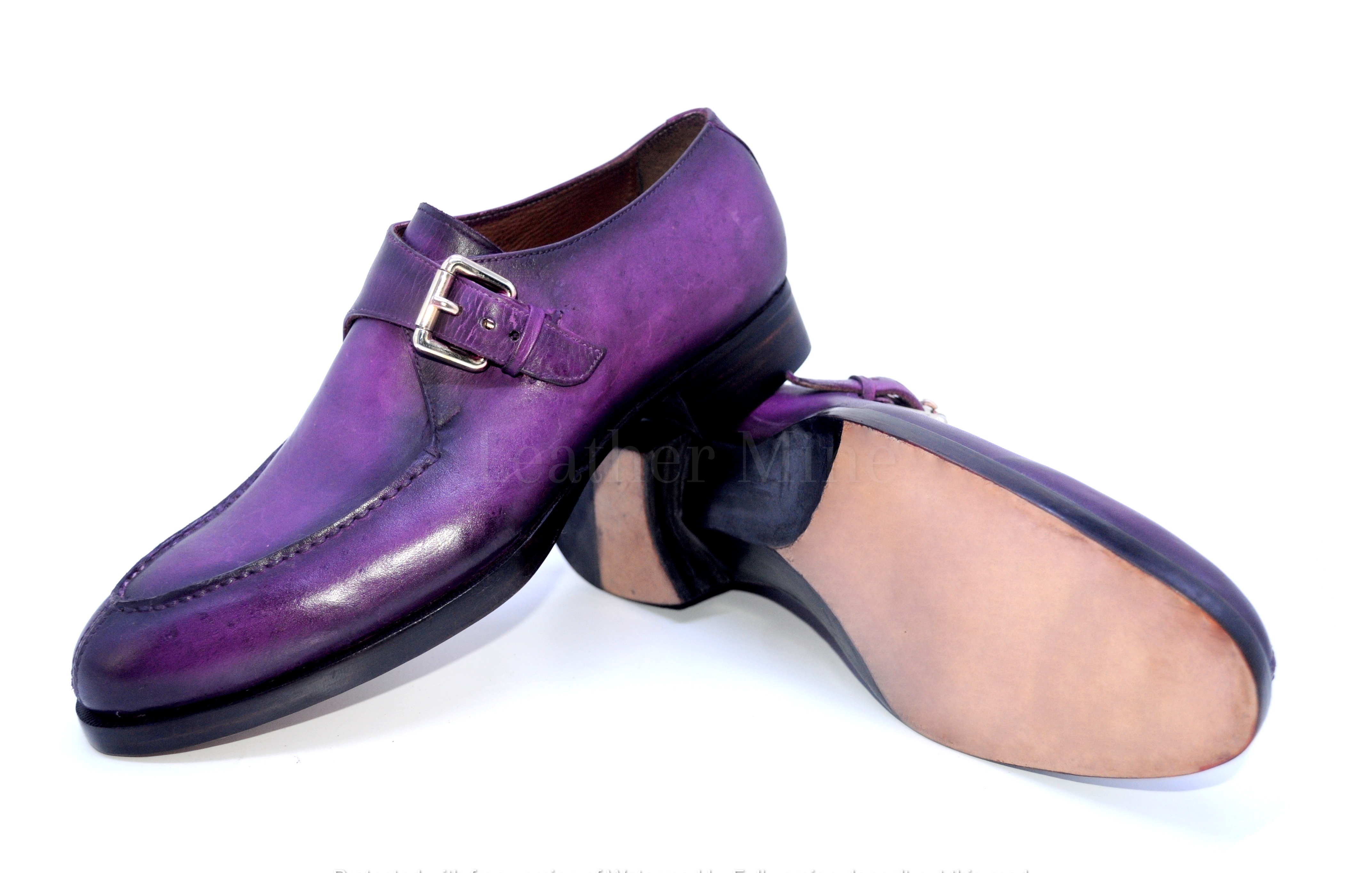 Leather Dress Shoes Men's Handmade Purple Patina Monk Strap Formal Shoes
