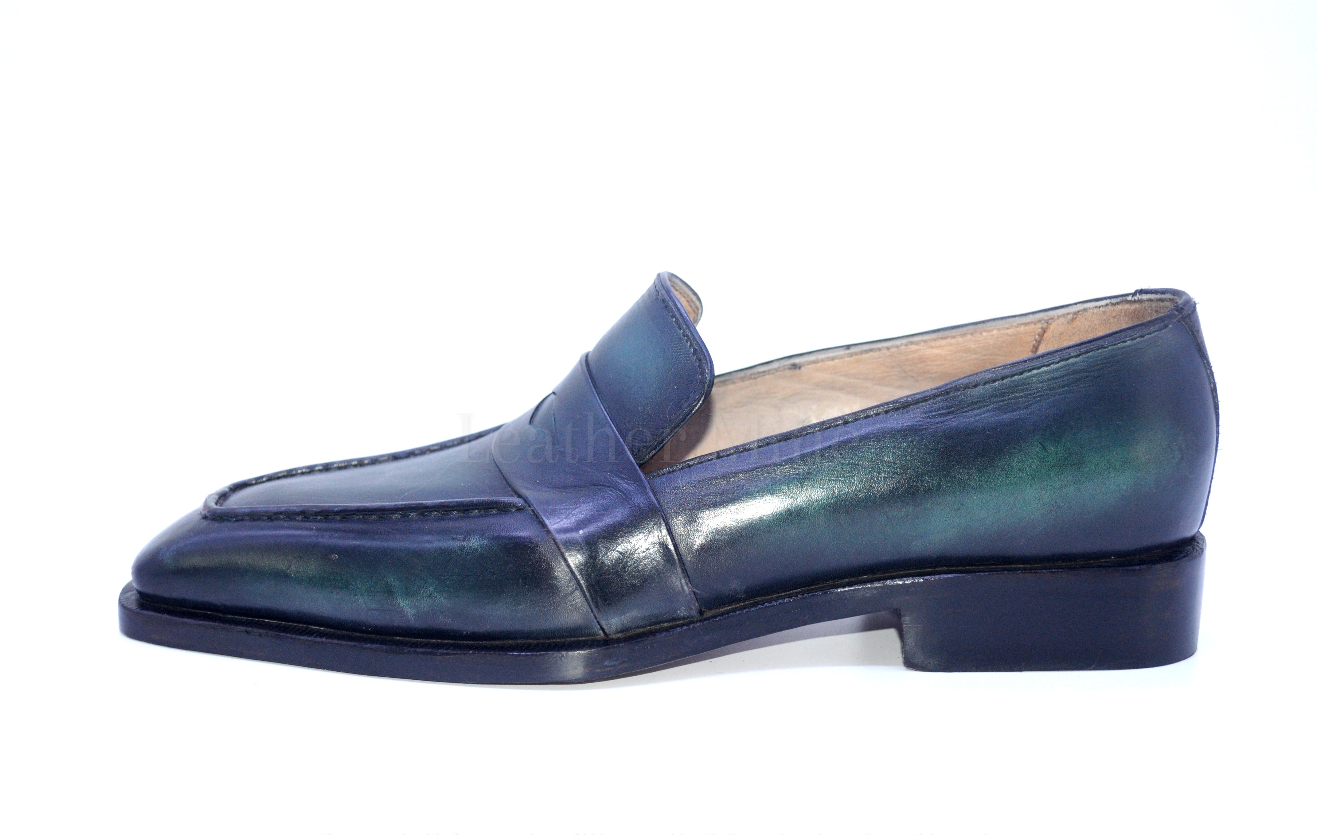 Gray Patina Loafers Dress Shoes For Men, Genuine Leather Custom Shoes