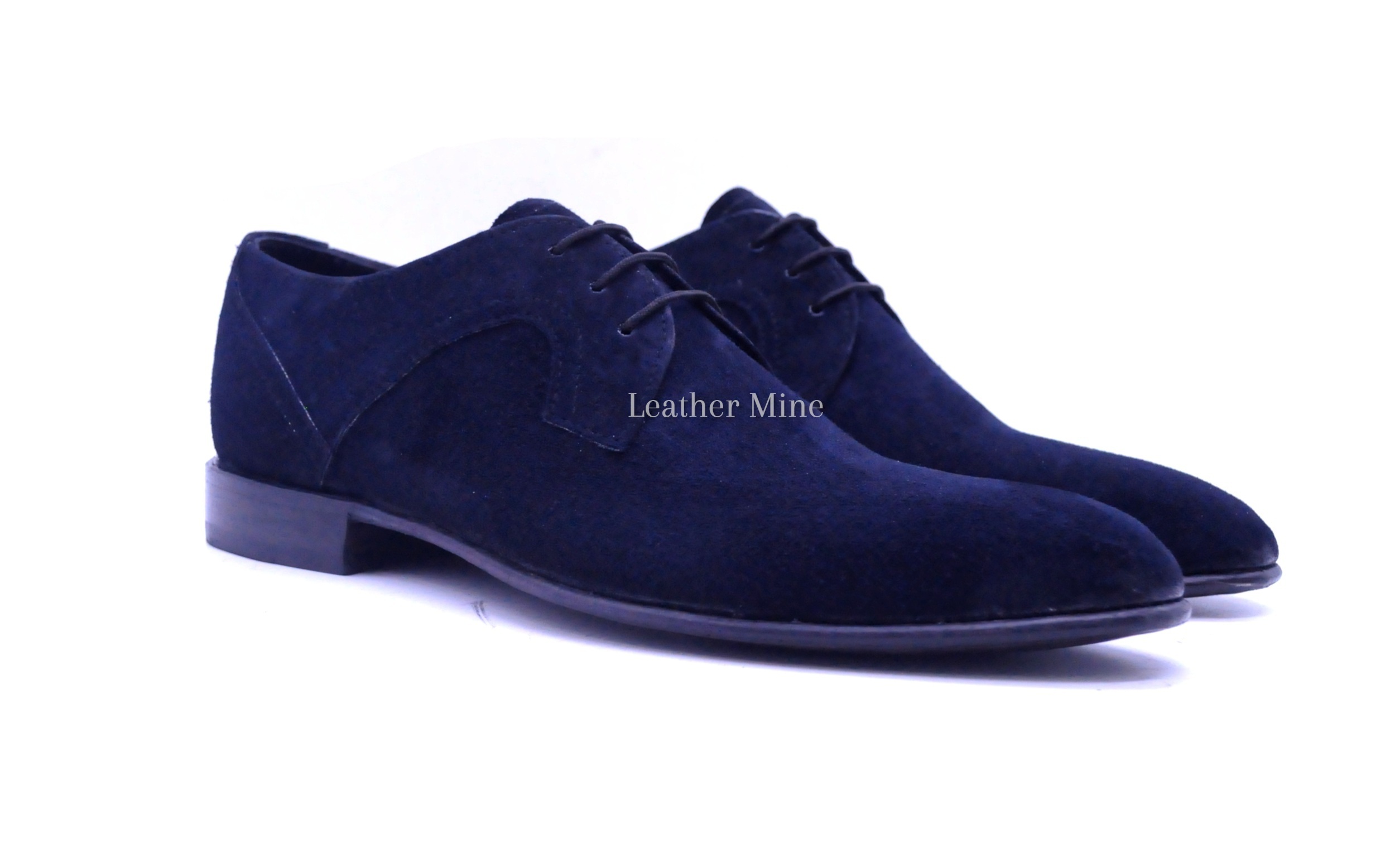 Blue Suede Oxfords Dress Shoes For Men, Genuine Leather Custom Shoes