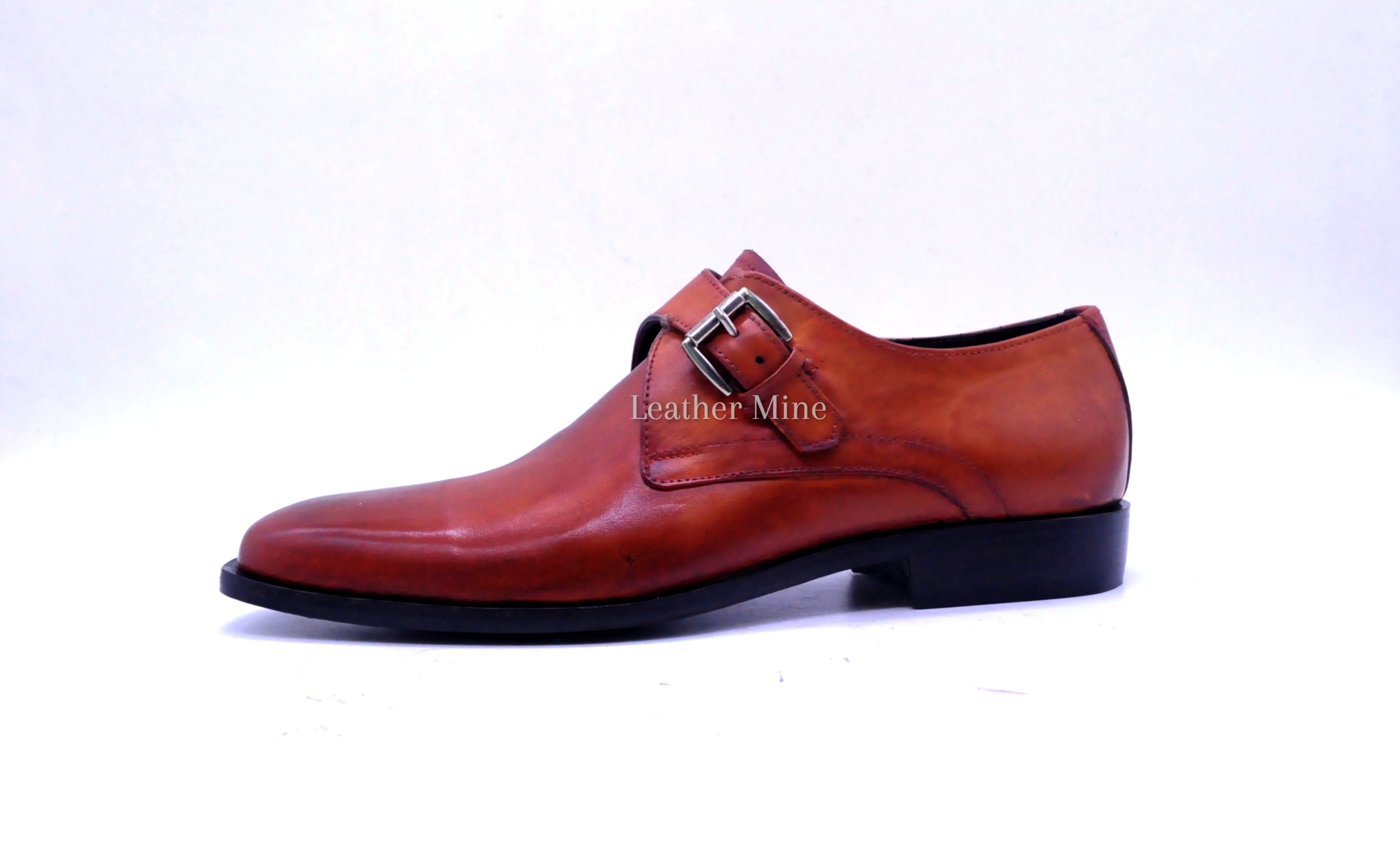 Handmade Tan Patina Monk Strap Dress Shoes, Genuine Leather Formal Shoes