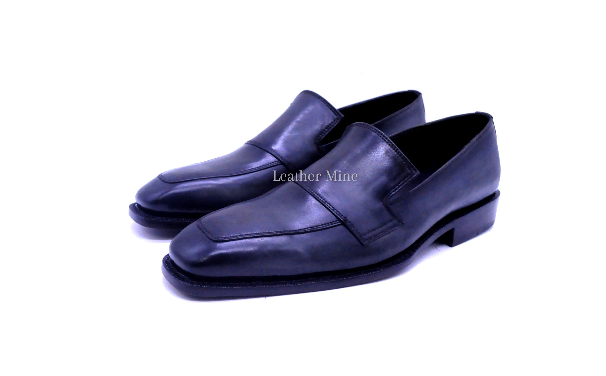 Gray Patina Loafers Dress Shoes For Men, Genuine Leather Custom Shoes