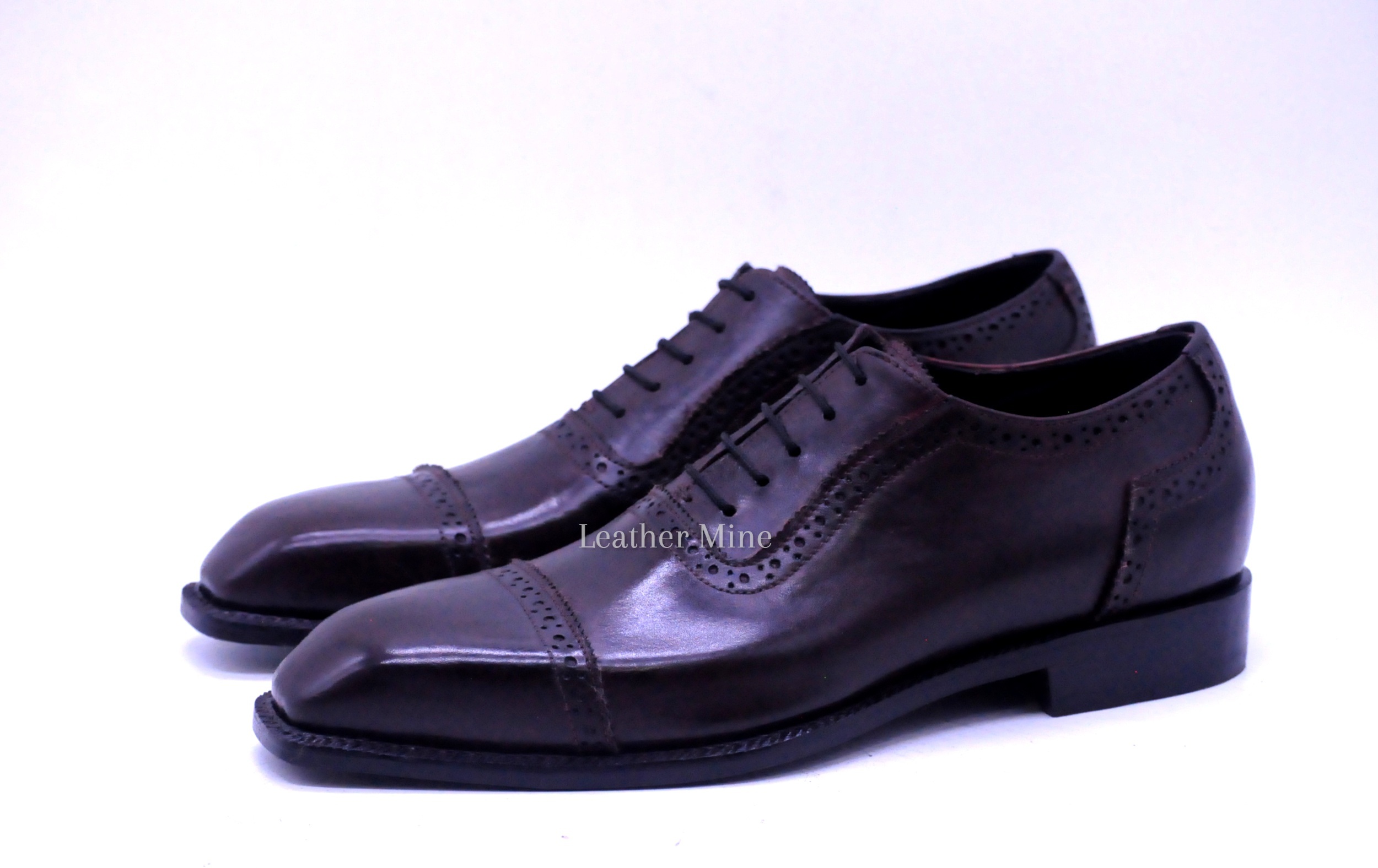 Handmade Brown Oxfords Dress Shoes, Genuine Leather Formal Shoes