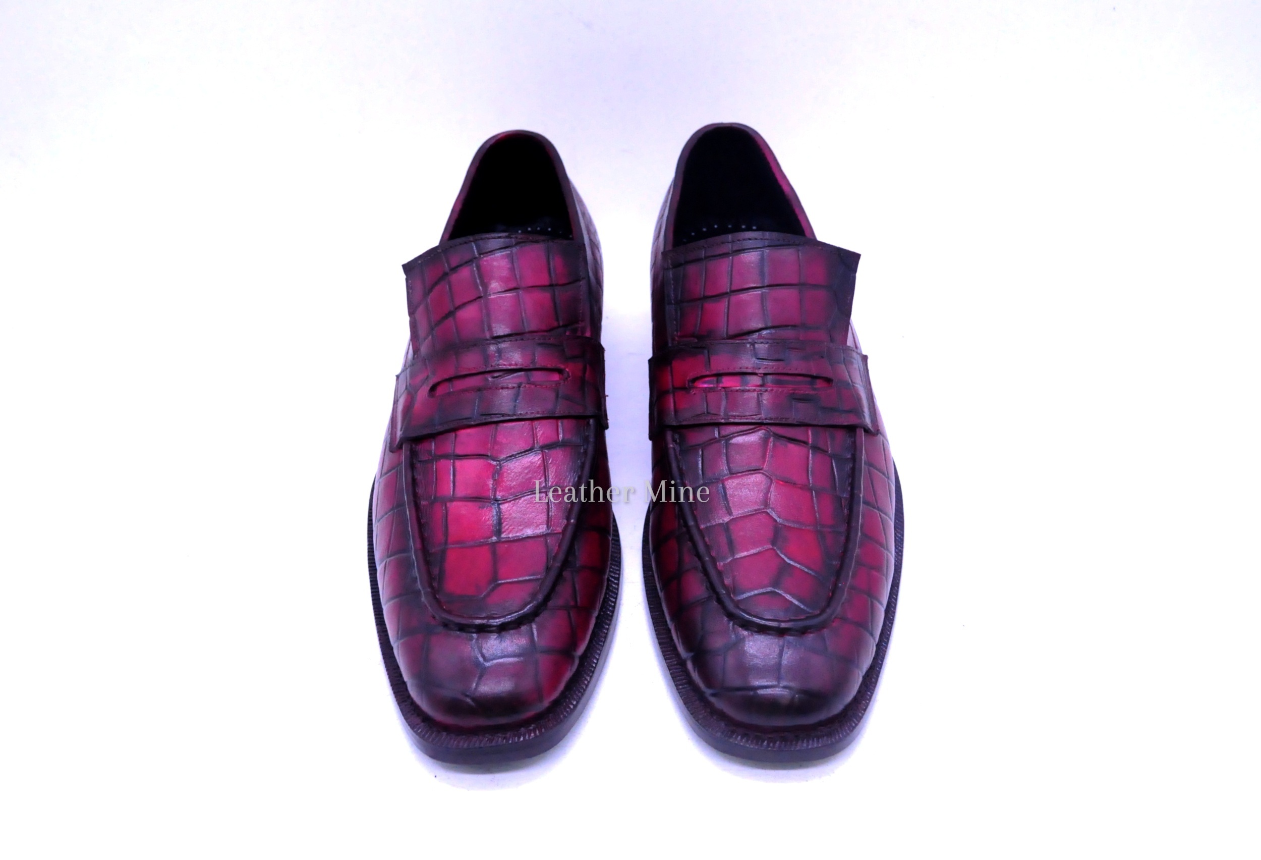 Men's Handmade Red Crocodile Leather Loafers Formal Custom Made Shoes