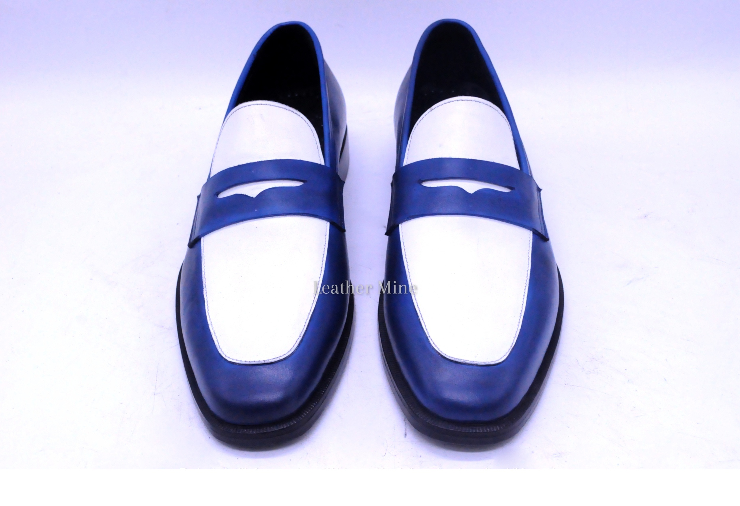 Handmade Two Tone Loafers Dress Shoes, Genuine Leather Formal Shoes