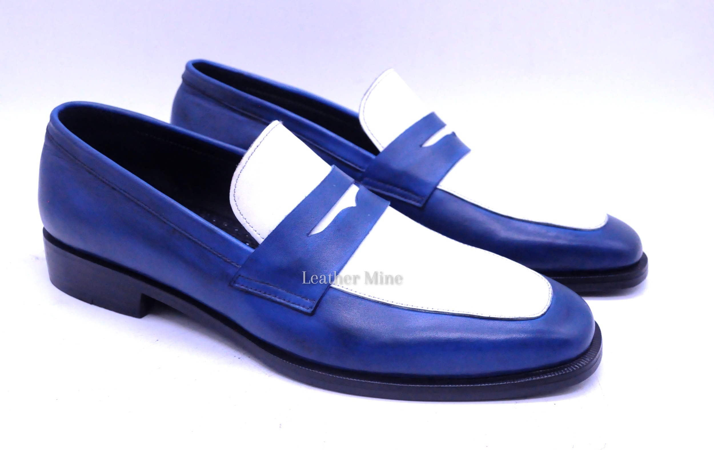 Leather Dress Shoes Men's Handmade Two Tone Loafers Formal Shoes