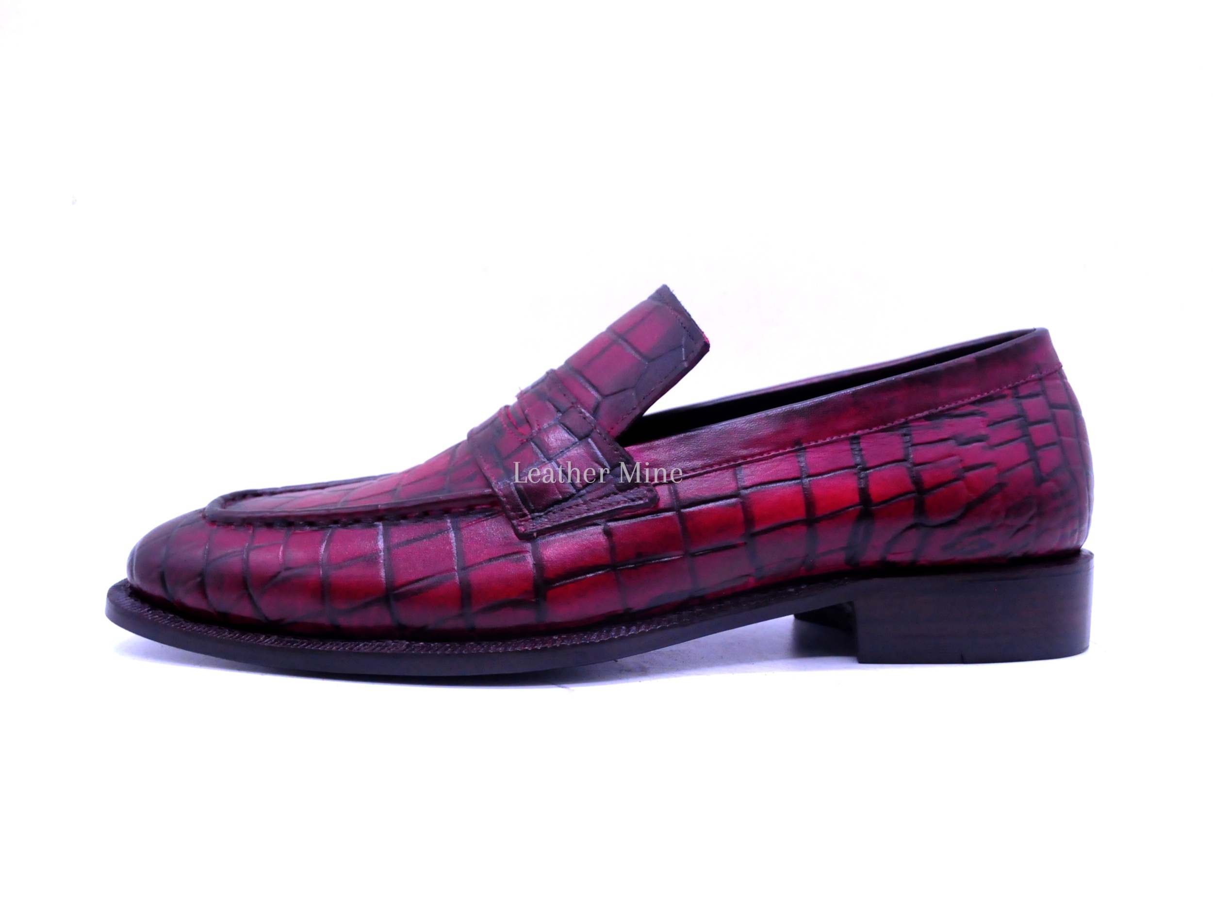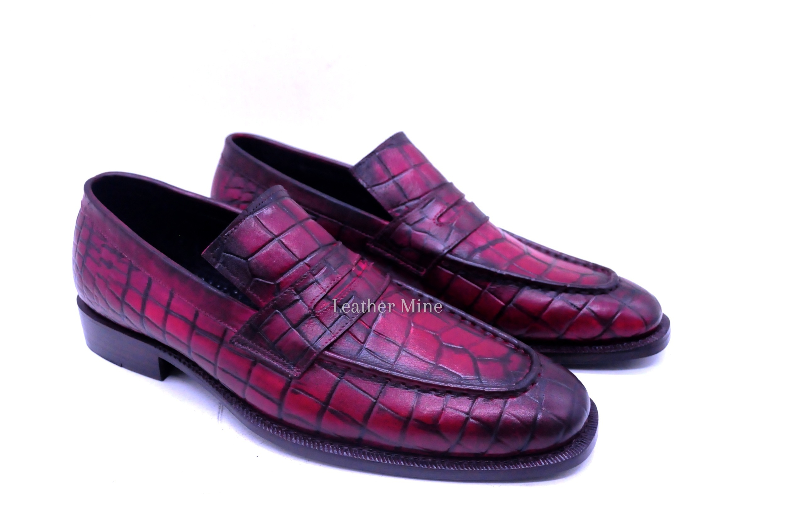 Red Crocodile Loafers Dress Shoes For Men, Genuine Leather Custom Shoes