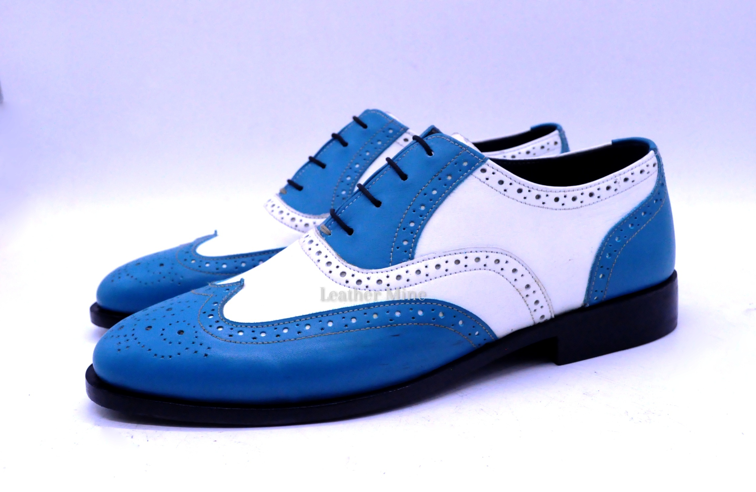 Leather Blue Oxfords shoes Men's, Handmade Formal Custom Shoes