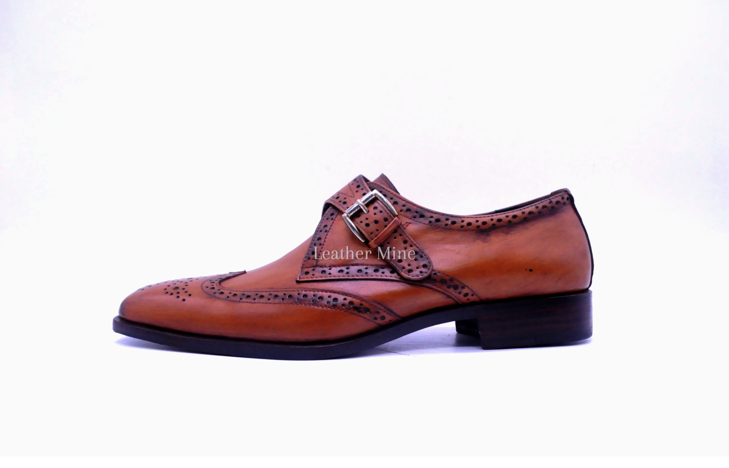 Handmade Tan Wingtip Brogue Dress Shoes, Genuine Leather Formal Shoes