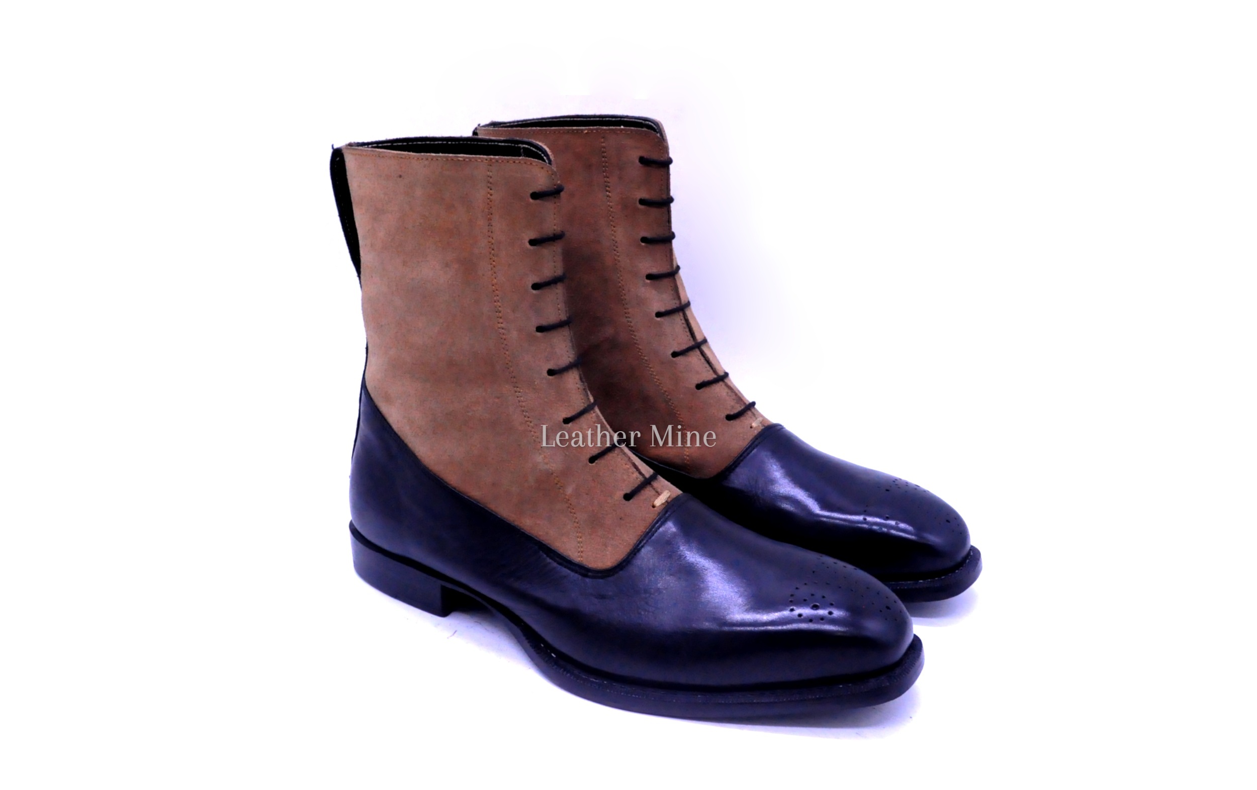 Brown Ankle High Dress Boots For Men, Genuine Leather Custom Boots