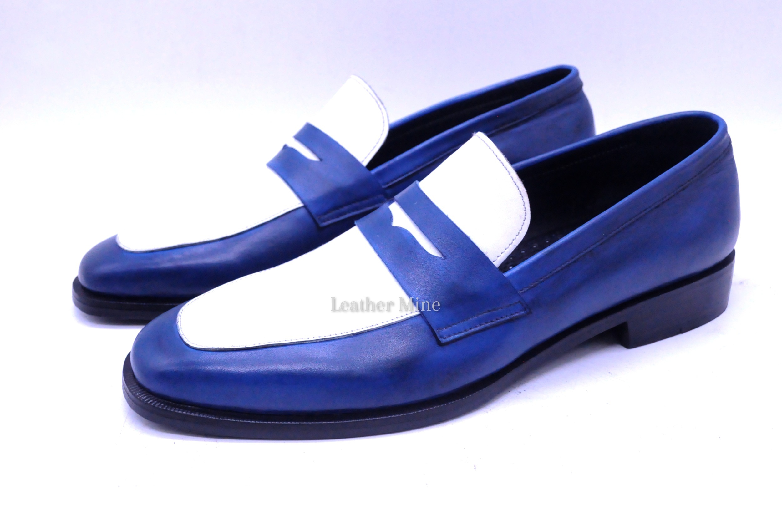 Leather Blue Loafers shoes Men's, Handmade Formal Custom Shoes