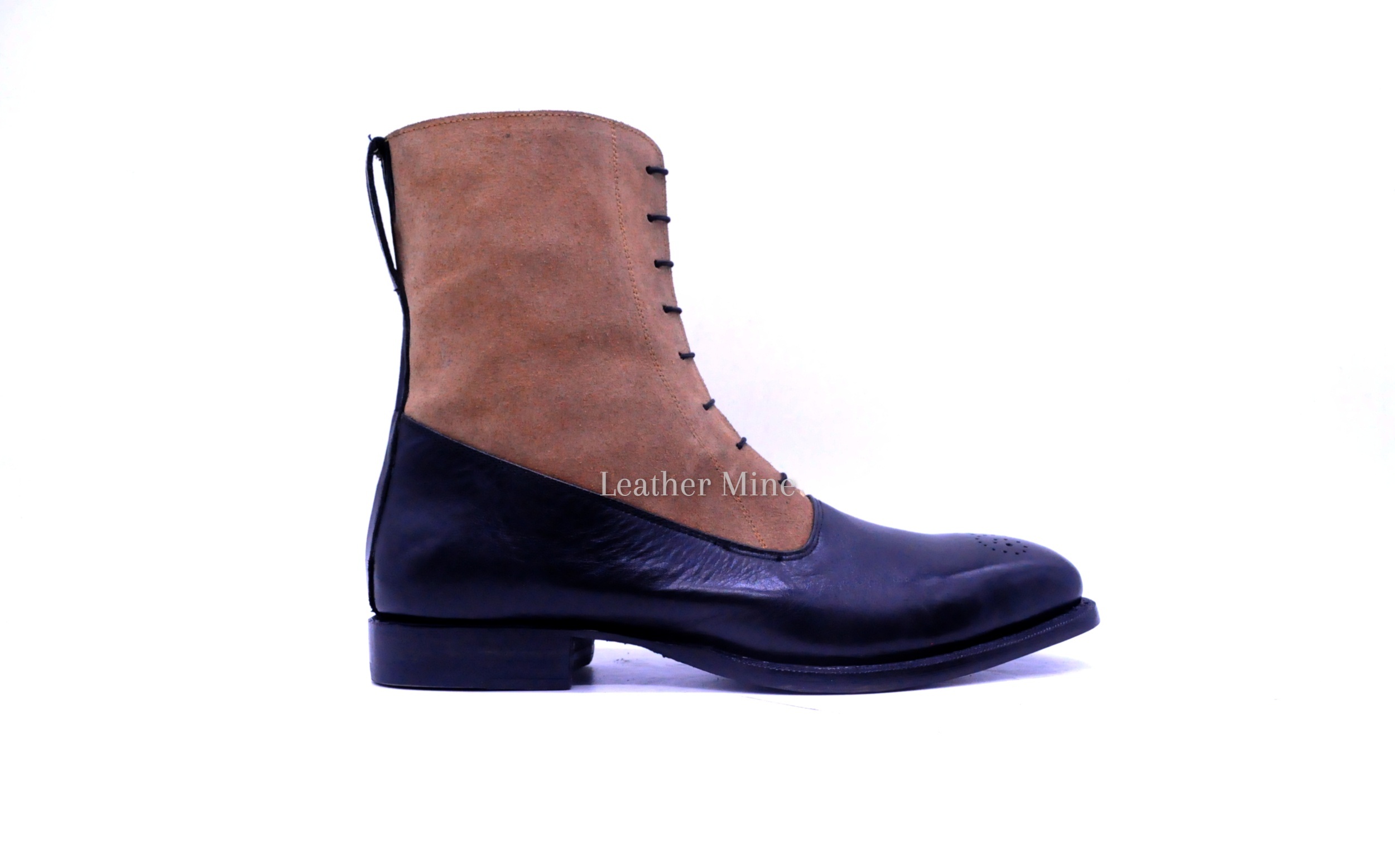 Leather Dress Boots Men's Handmade Two Tone Ankle High Formal Boots